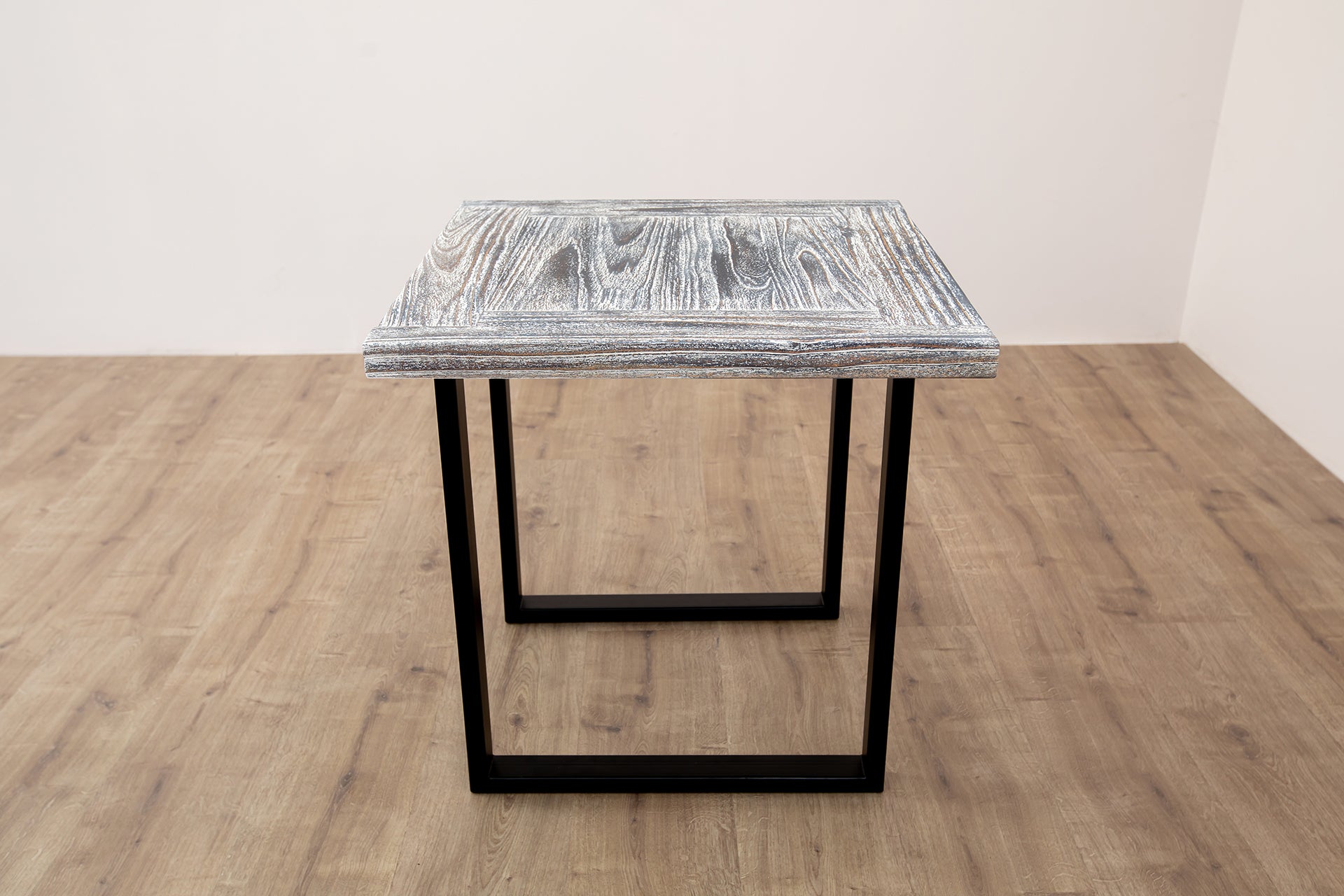 24x24" Teak Mission Edge Square Leg Side Table, Brushed-Textured Weathered Finish