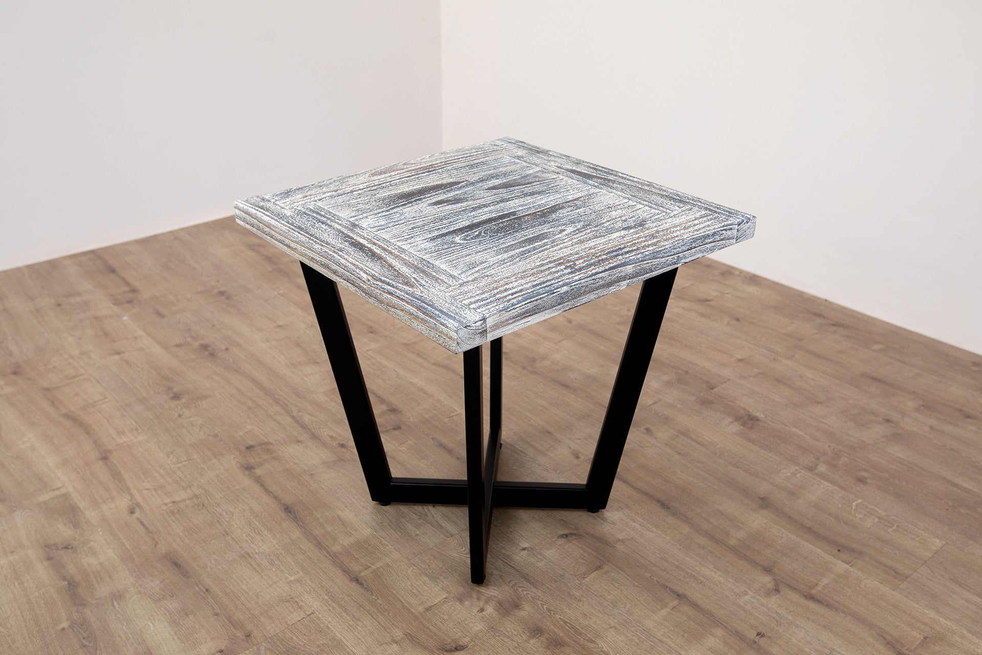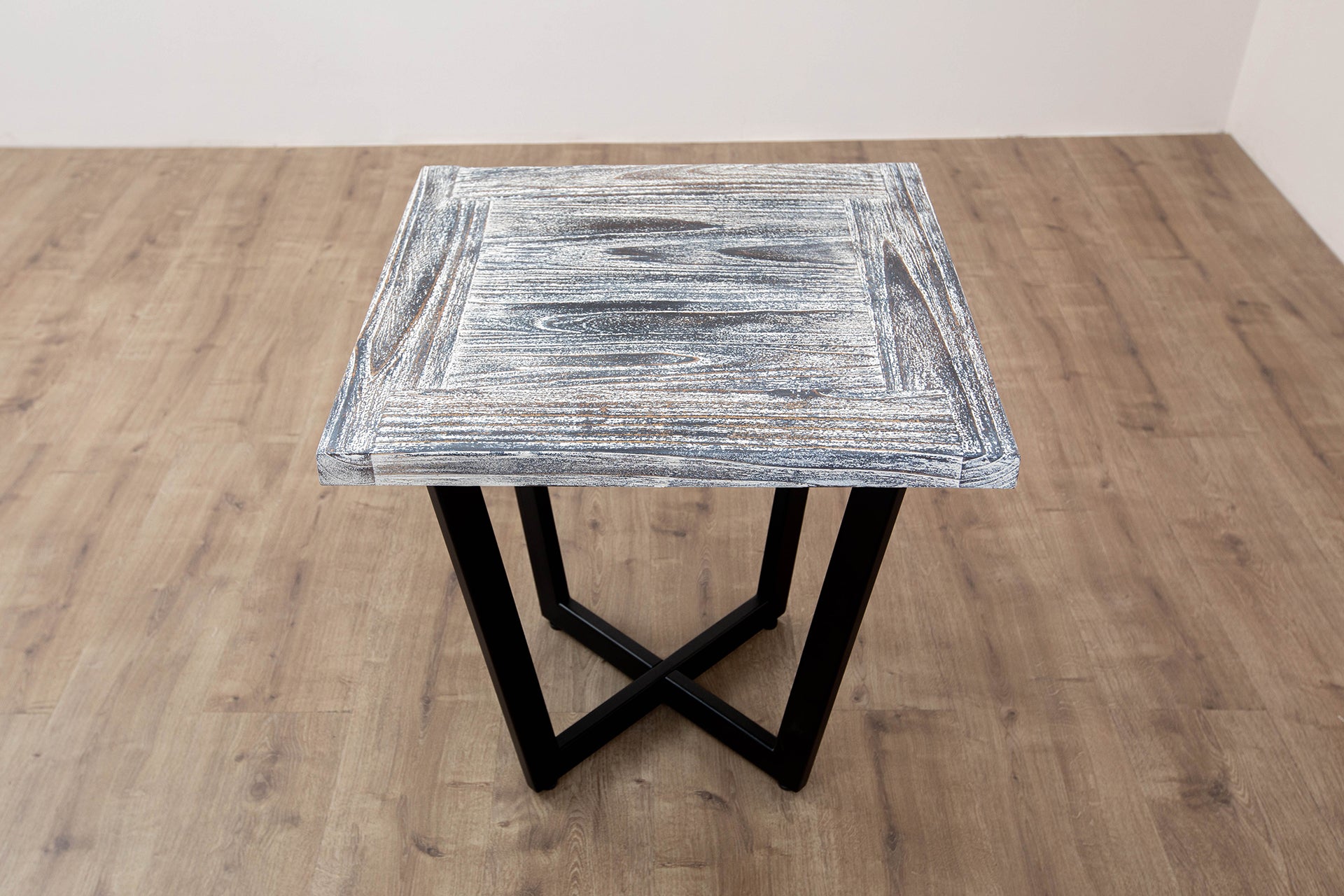 24x24" Teak Mission Edge Box Leg Side Table, Brushed-Texture Weathered Finish