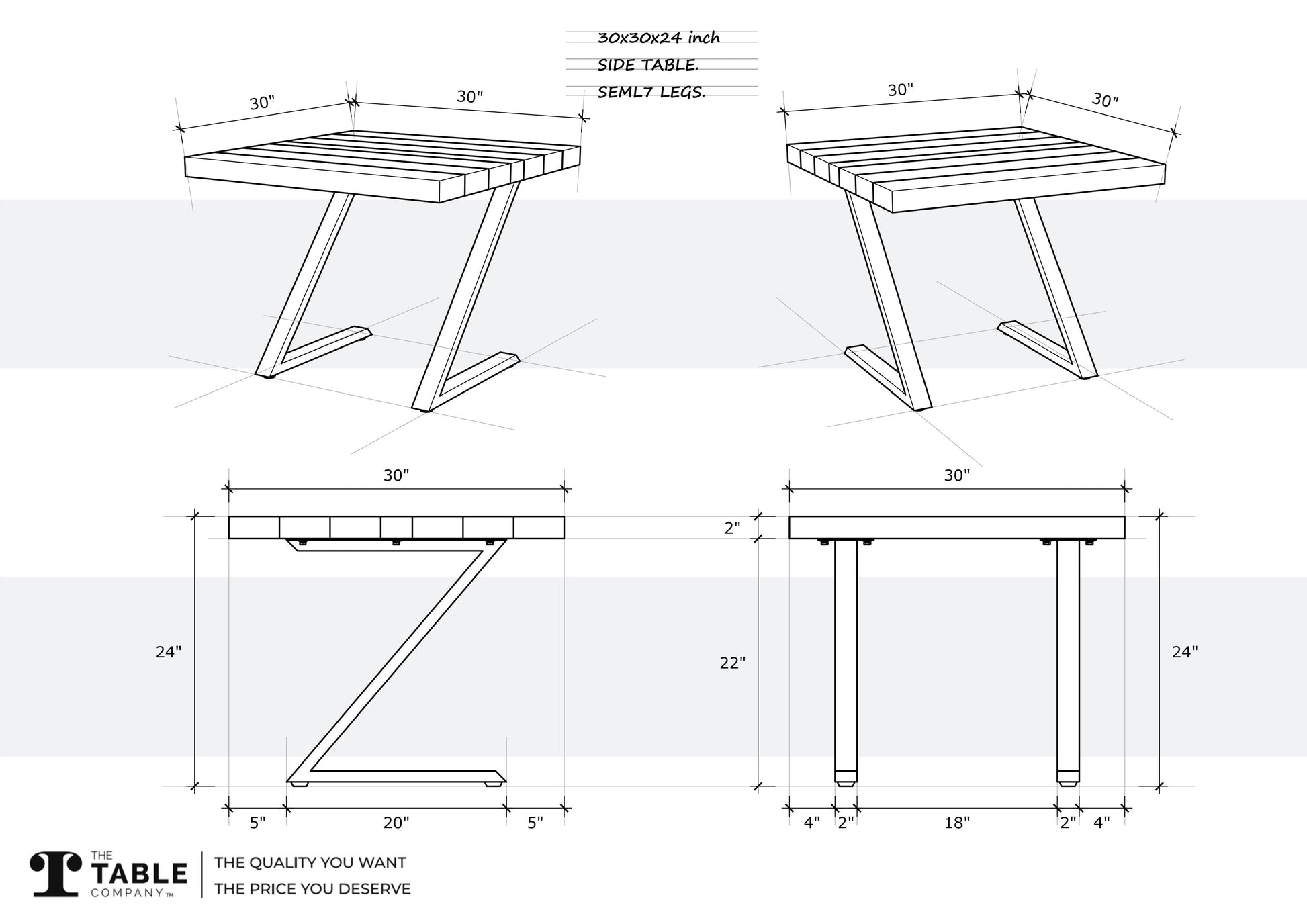 30x30" Teak Live Edge Side Table, Brushed-Texture Sun Bleached Finish