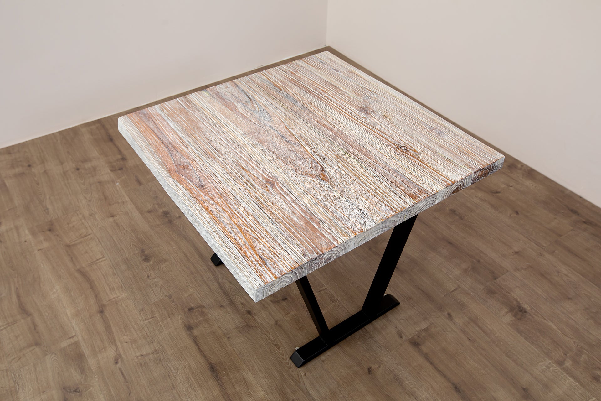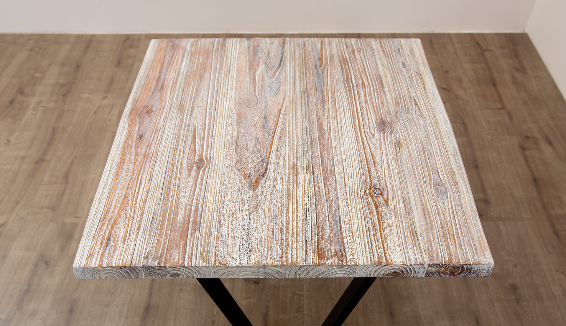 30x30" Teak Live Edge Side Table, Brushed-Texture Sun Bleached Finish