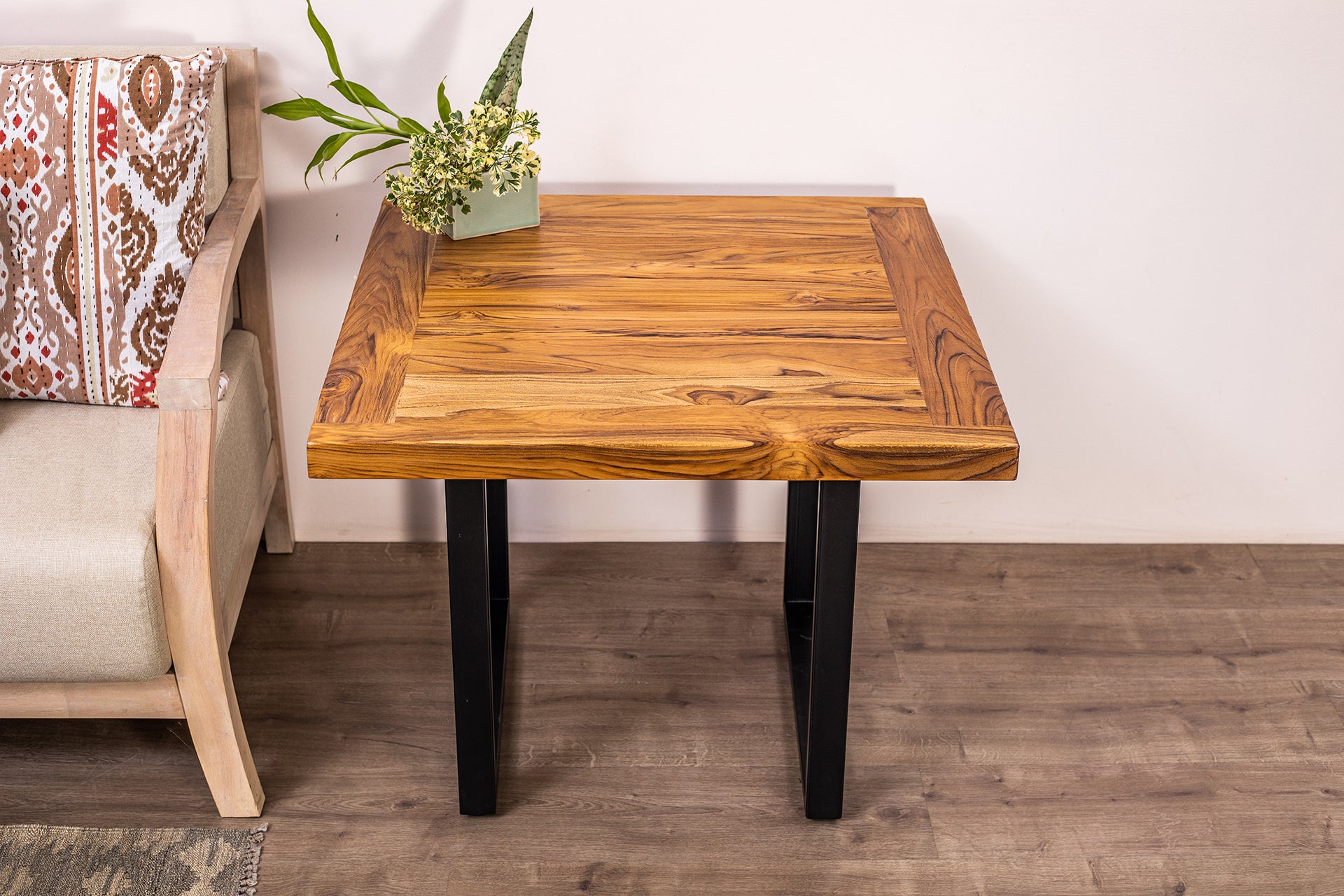 30x30" Teak Mission Edge Side Table, Brushed-Texture Natural Finish