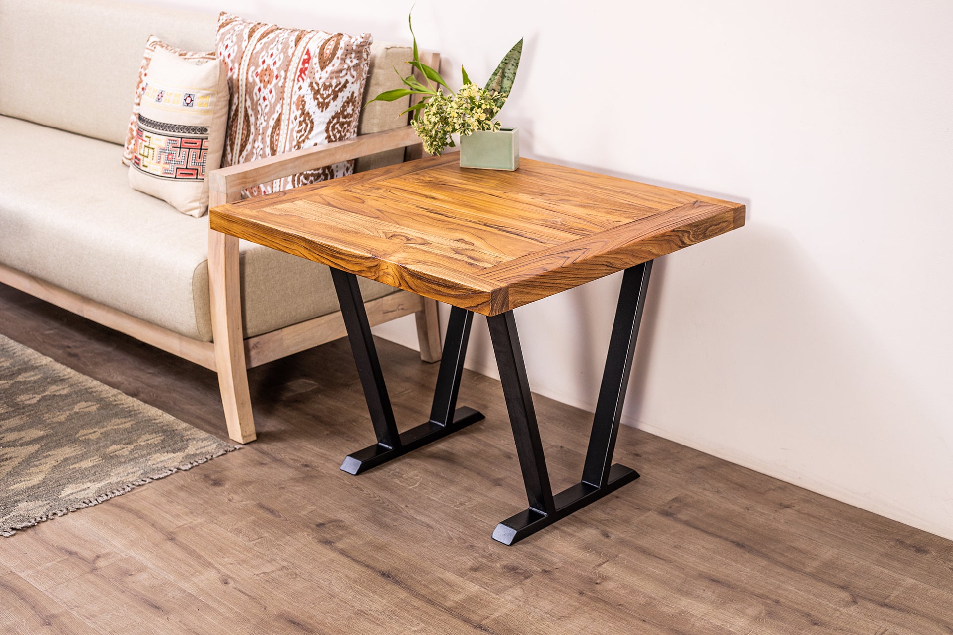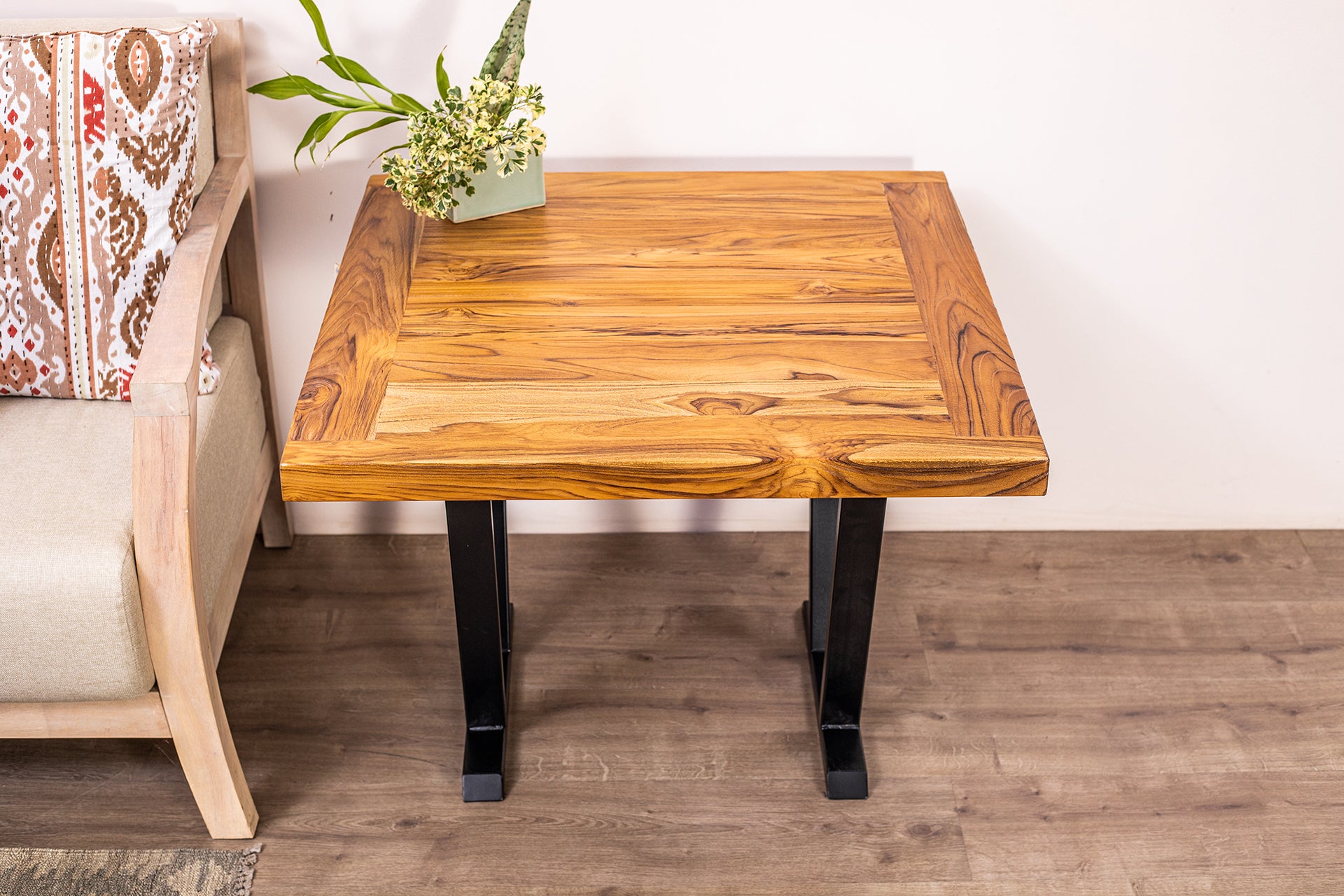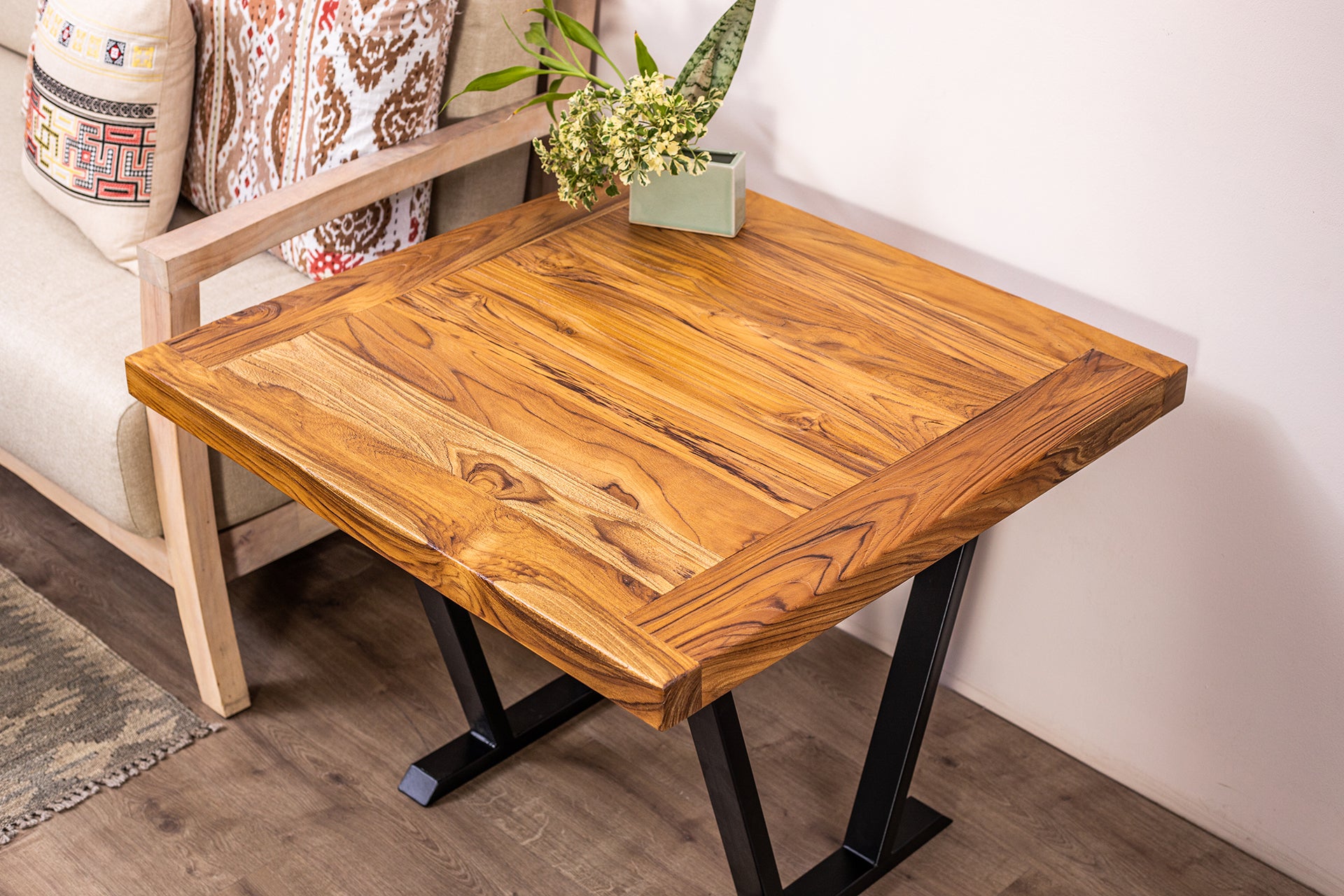 30x30" Teak Mission Edge Side Table, Brushed-Texture Natural Finish