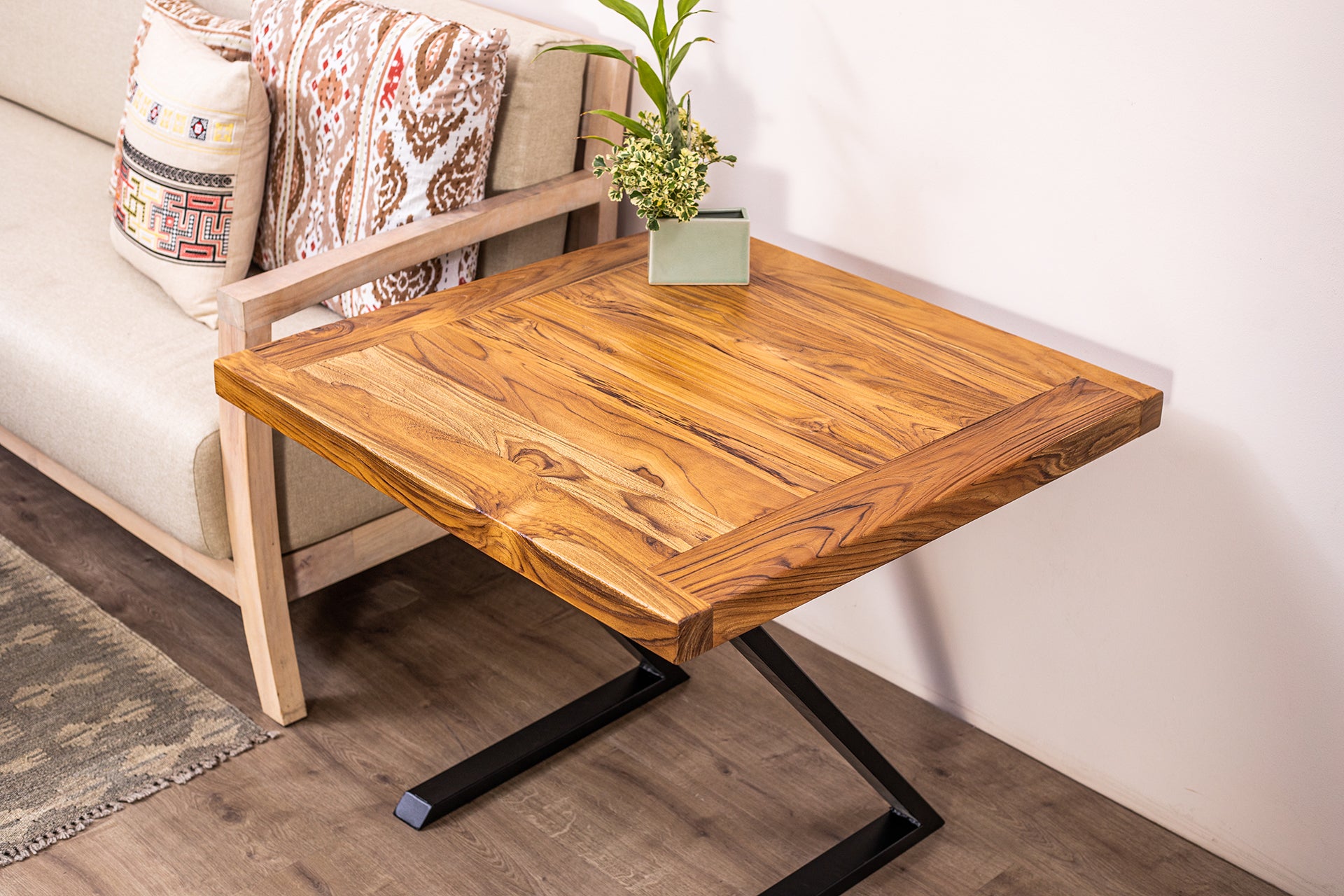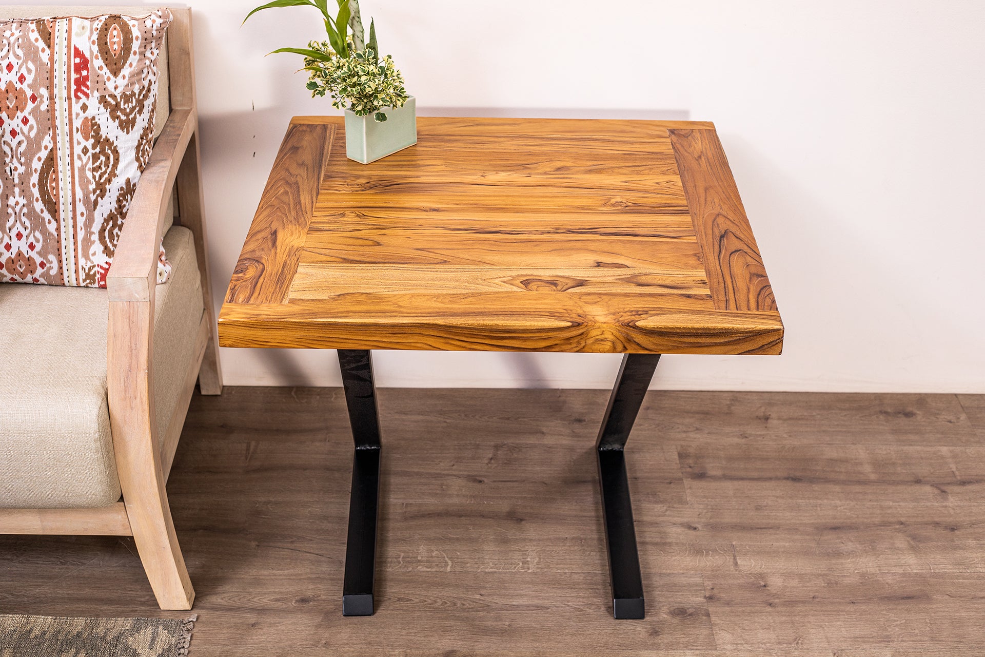 30x30" Teak Mission Edge Side Table, Brushed-Texture Natural Finish