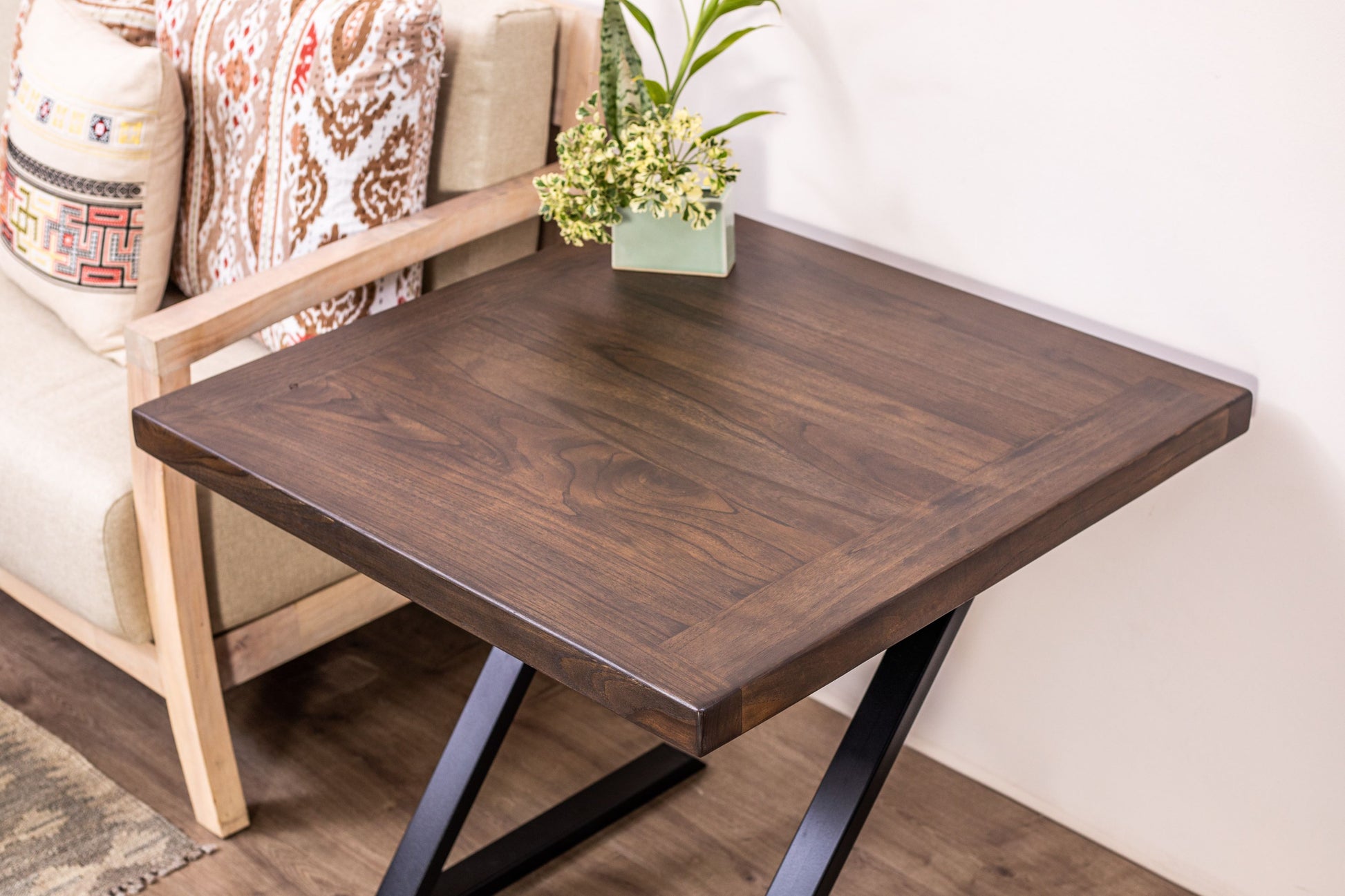 30x30" Teak Mission Edge Side Table, Smooth-Texture Cocoa Finish