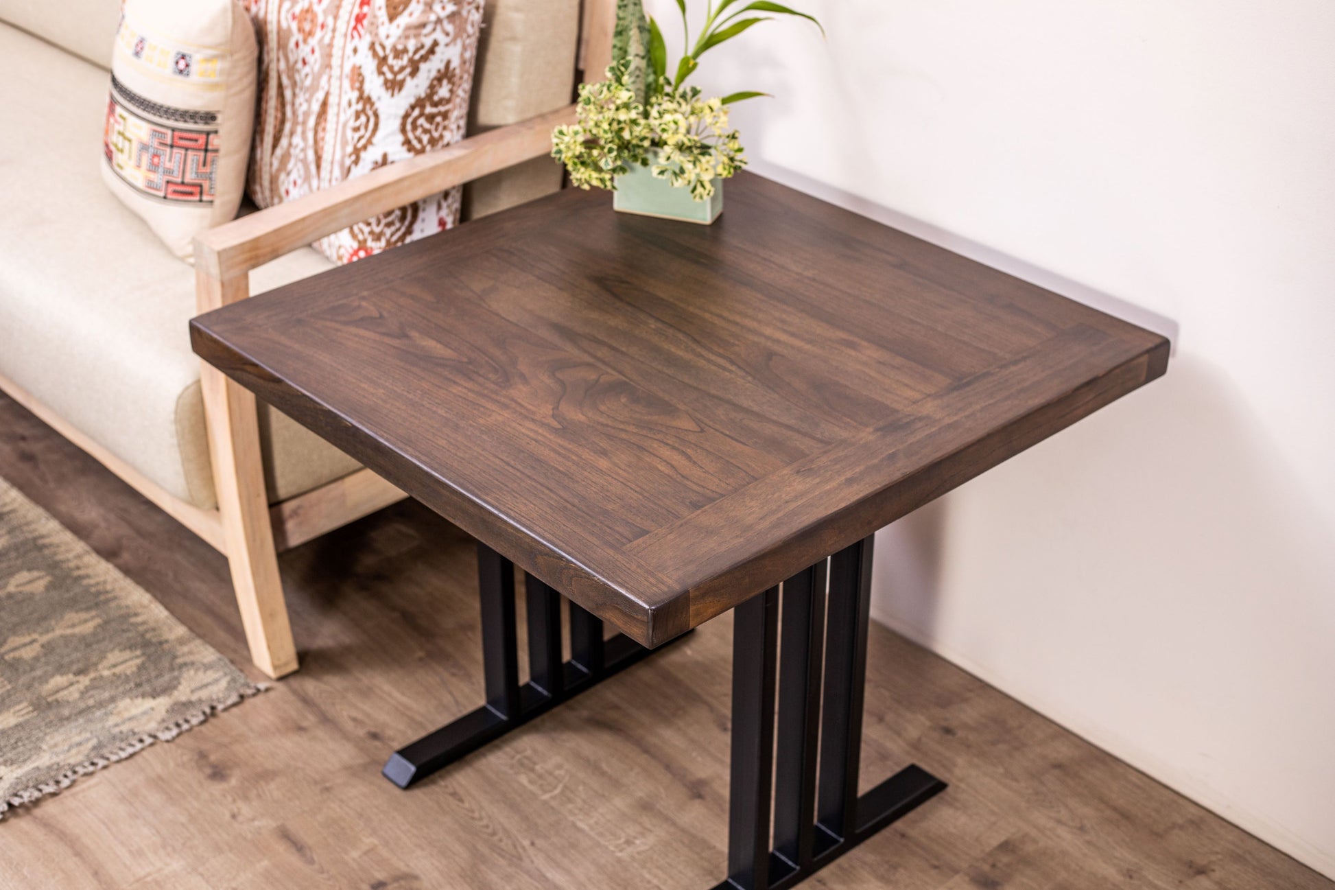 Square table top made from 100% solid natural wood. No veneers—just real grain, rich color, and unique character in every piece.