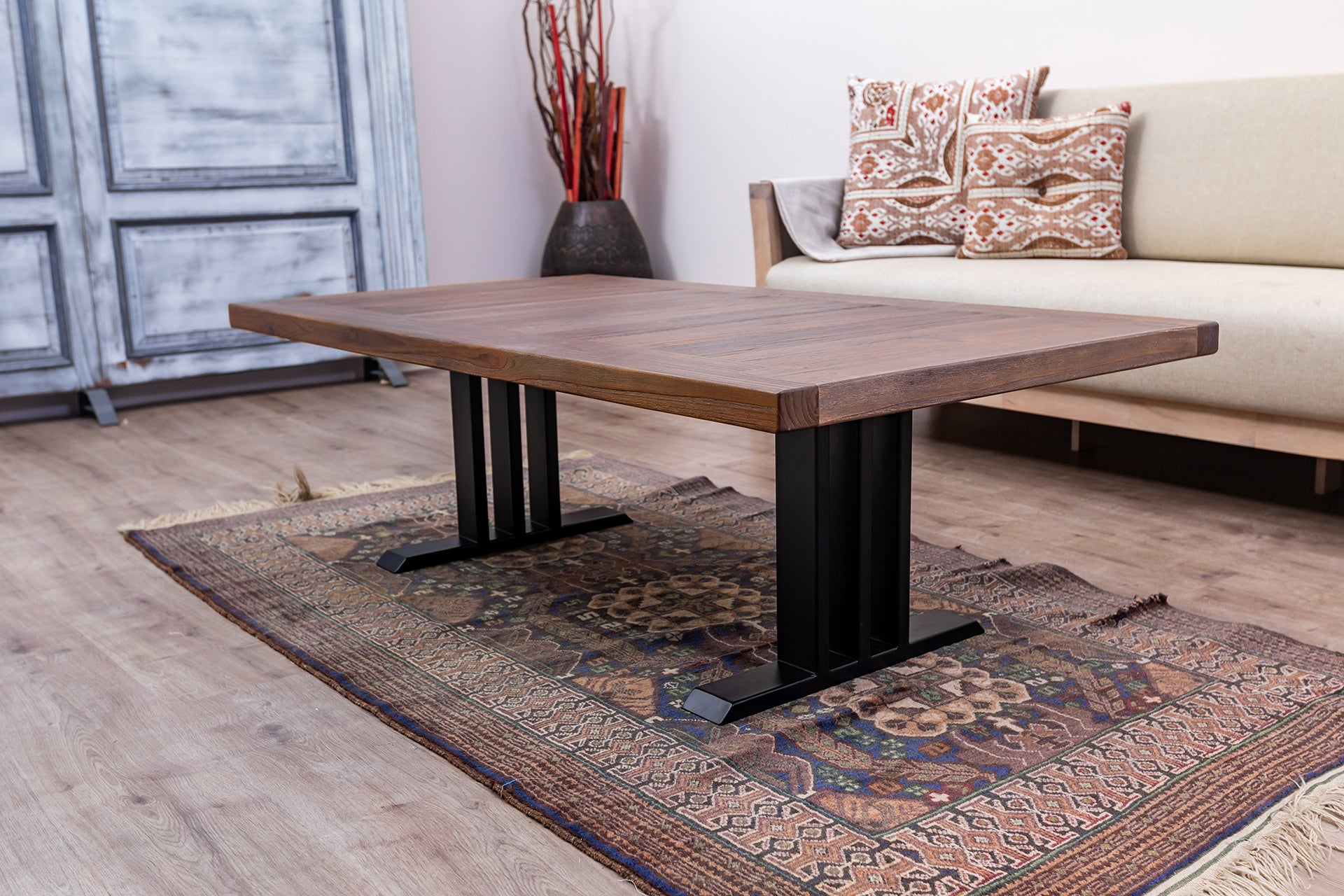 Elevate your space with our handcrafted teak coffee table, featuring rich natural wood grain and sleek, durable metal legs — a perfect blend of rustic charm and modern design.