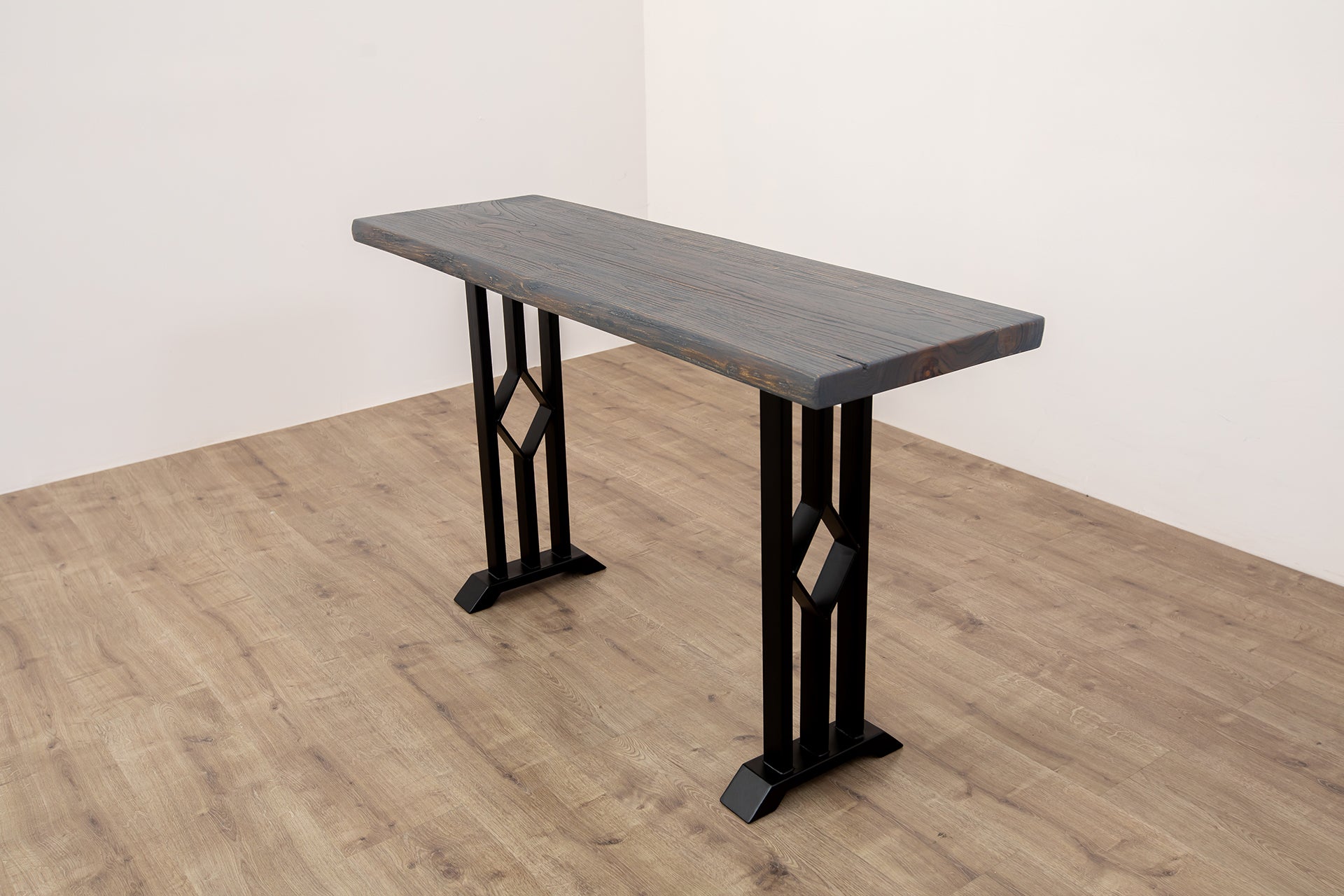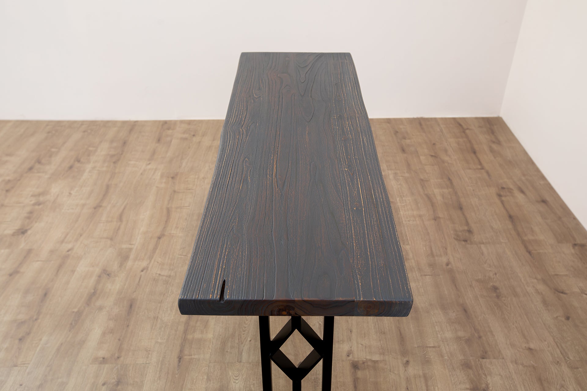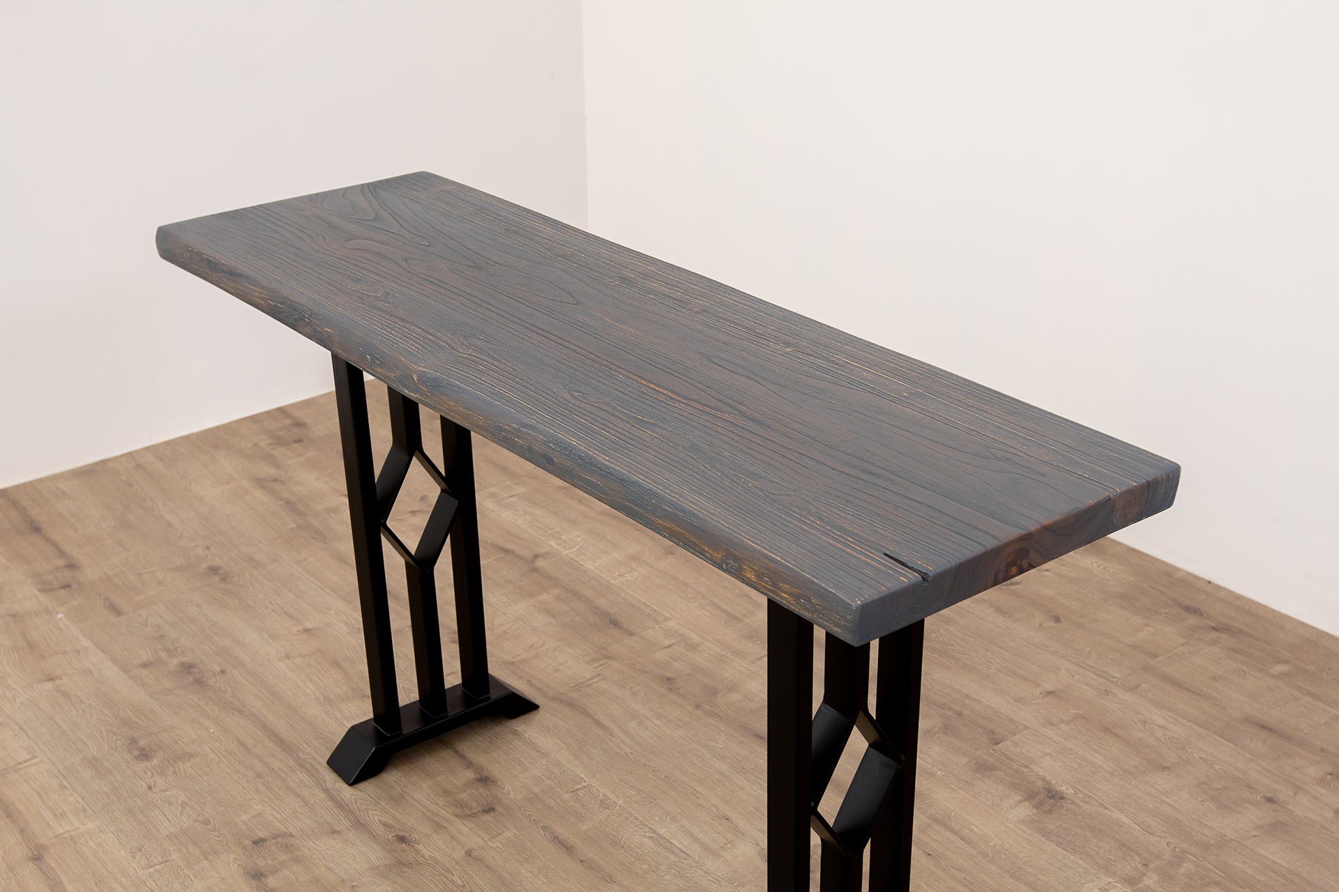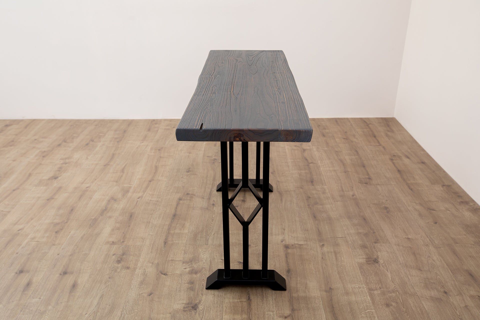 52x12" Teak Live Edge Console Table, Brushed-Texture Anthracite Grey Finish