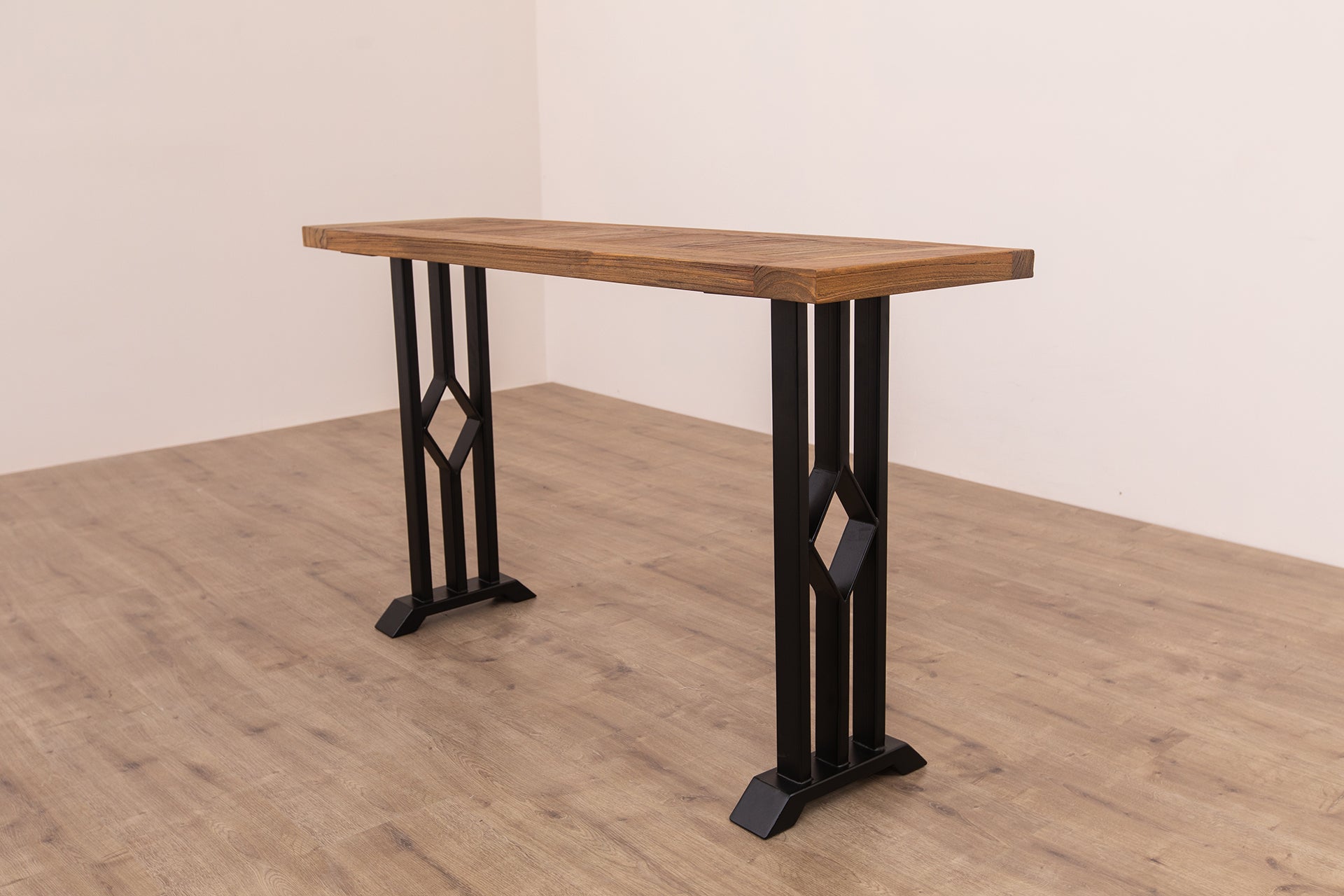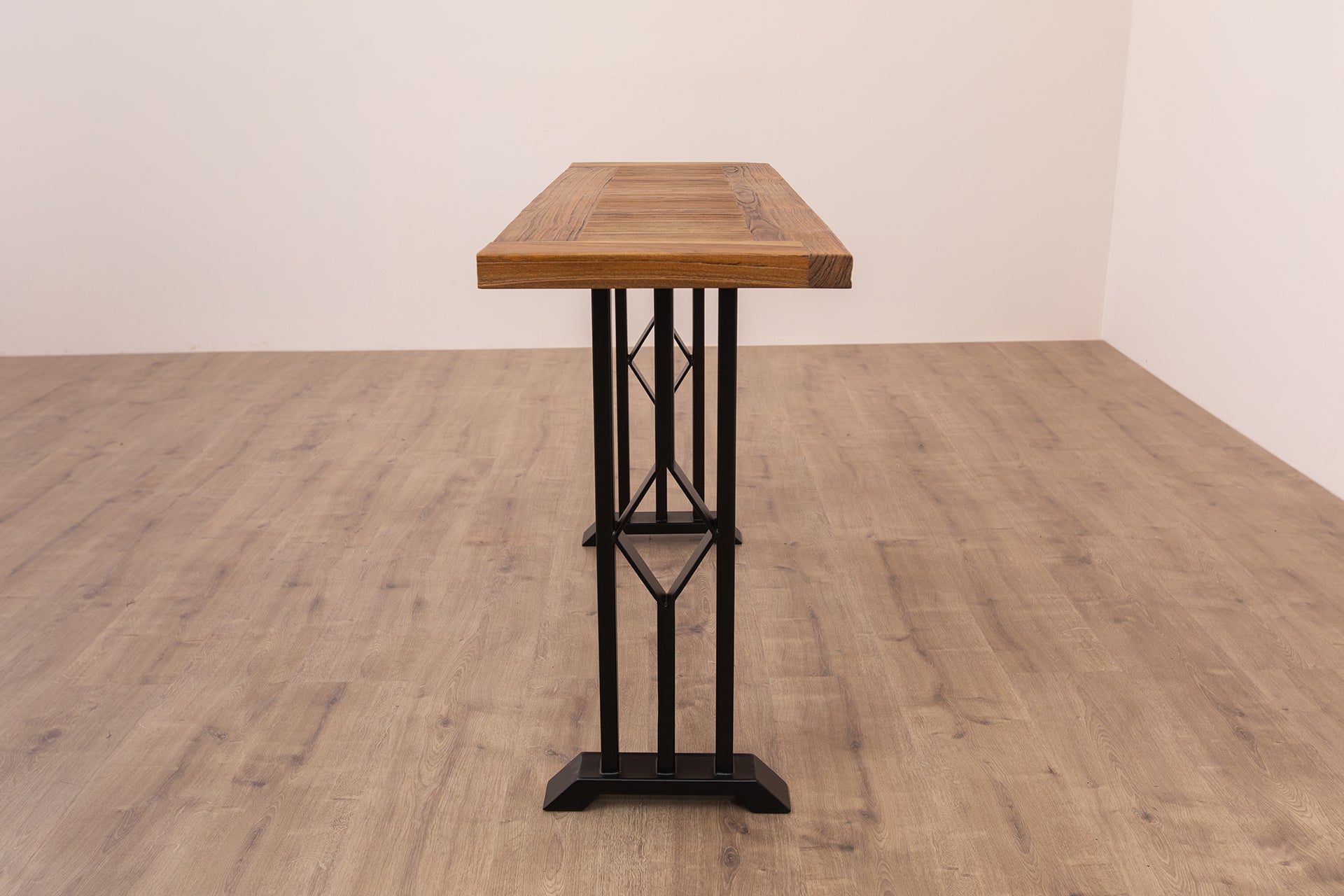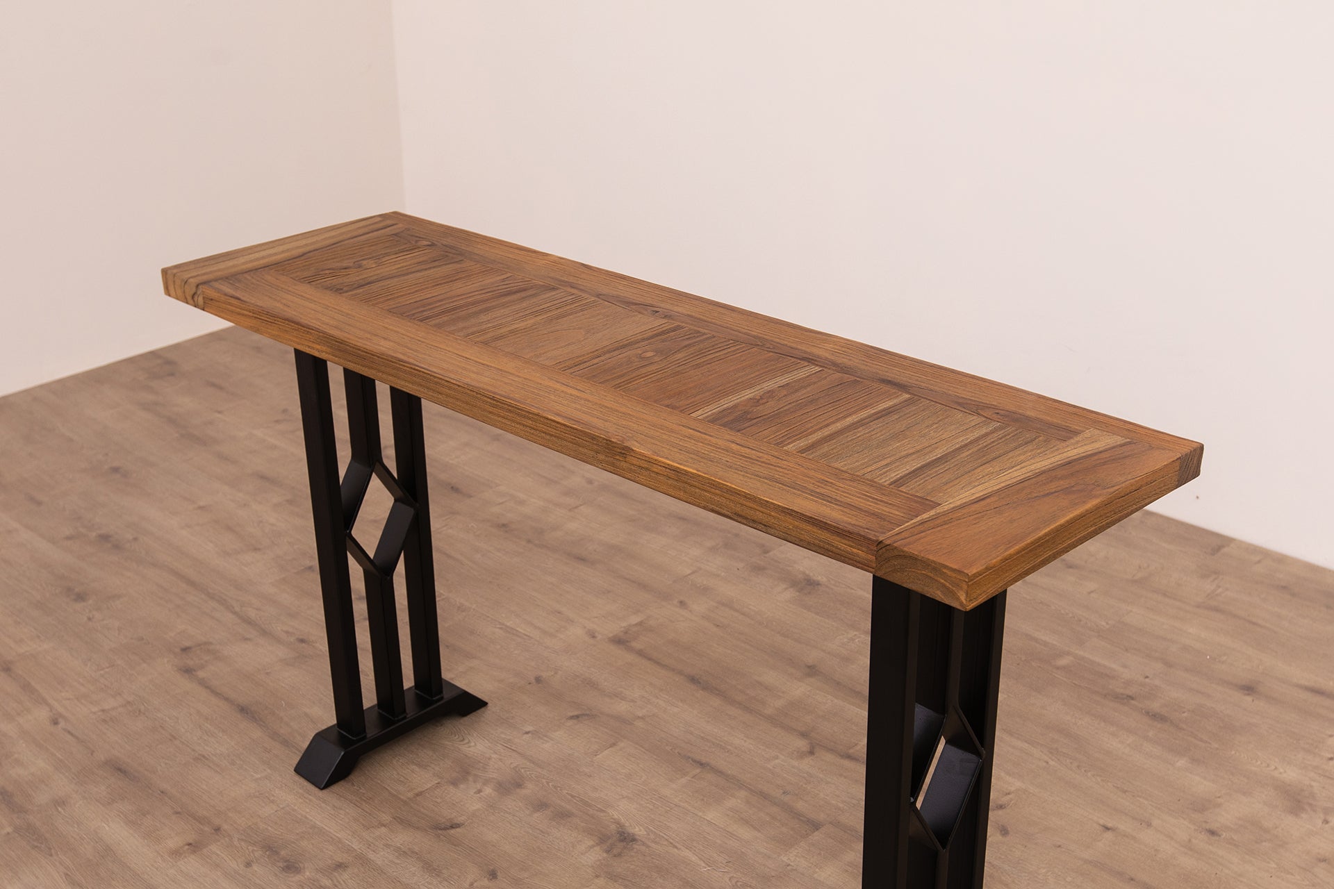 Elevate your space with our handcrafted mission edge teak console table, highlighting the clean lines of solid wood paired with sleek, durable metal legs — a perfect blend of timeless craftsmanship and contemporary style.
