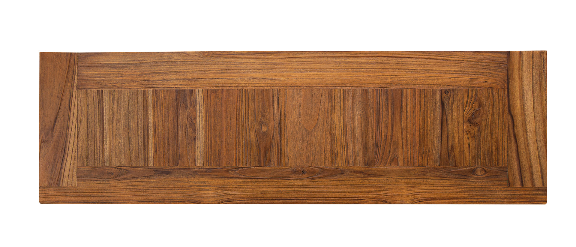 Crafted from 100% solid teak wood, this tabletop features a hand-applied brushed texture that enhances the natural grain and adds a subtle, rustic character. The brushing technique highlights the depth and movement of the wood, giving each piece a tactile, organic feel. Durable, timeless, and full of natural beauty, it’s perfect for both modern and classic interiors.