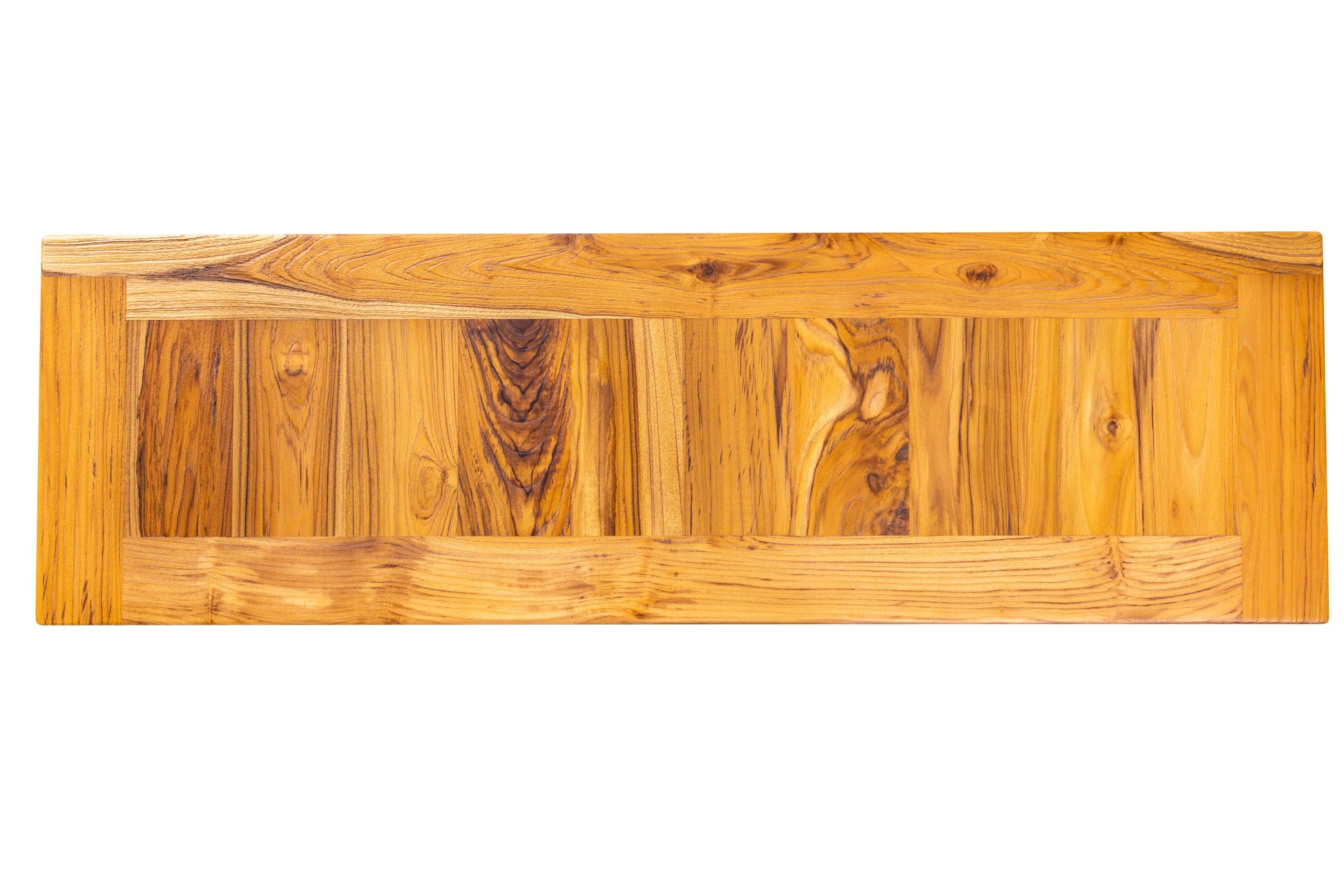 Crafted from 100% solid teak wood, this tabletop features a hand-applied brushed texture that enhances the natural grain and adds a subtle, rustic character. The brushing technique highlights the depth and movement of the wood, giving each piece a tactile, organic feel. Durable, timeless, and full of natural beauty, it’s perfect for both modern and classic interiors.