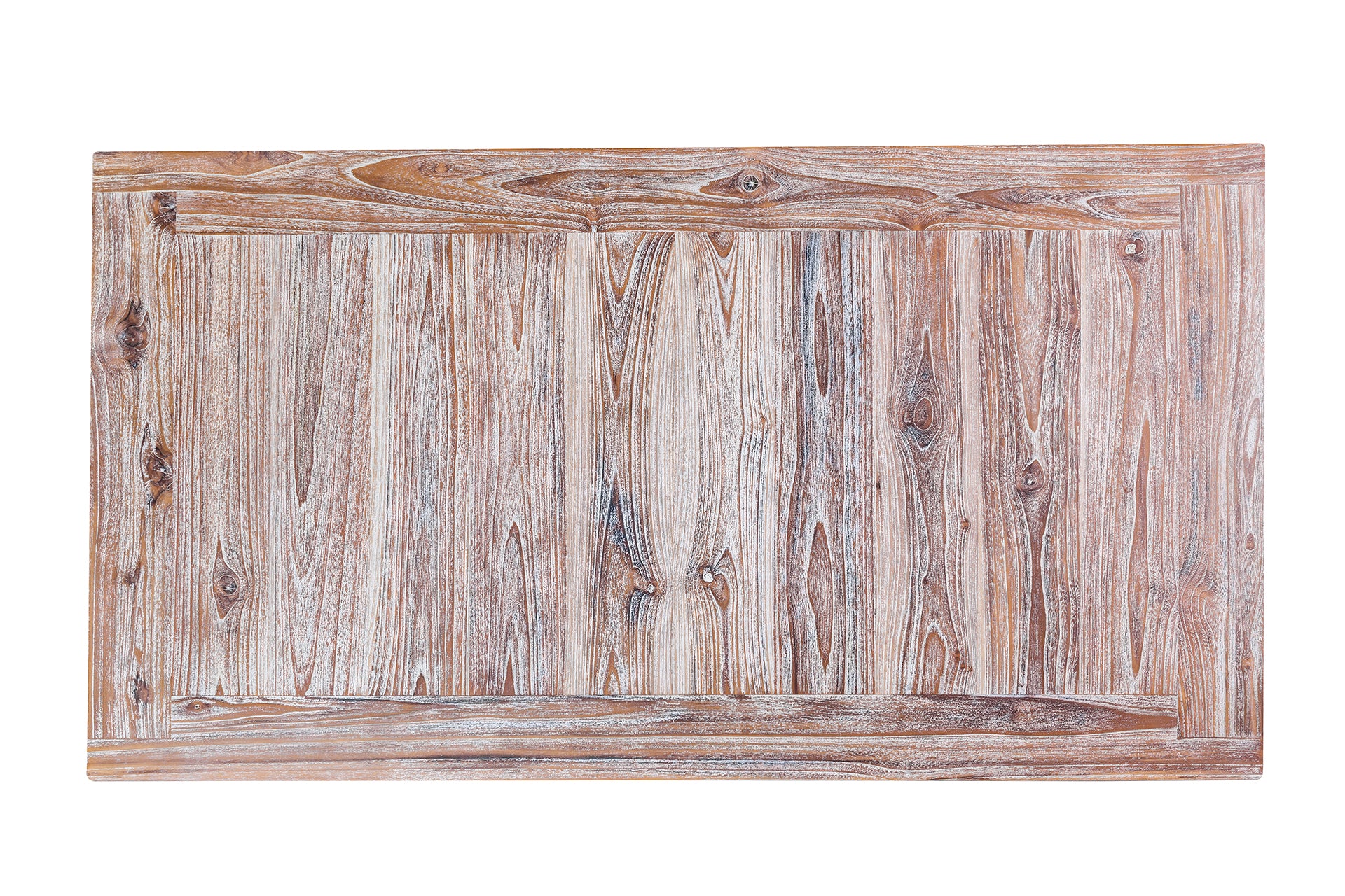 Made from 100% solid teak wood never veneer, this tabletop features a hand-brushed texture that highlights the natural grain and rustic charm. The technique enhances the wood’s depth and movement, creating a durable, tactile surface full of organic beauty.