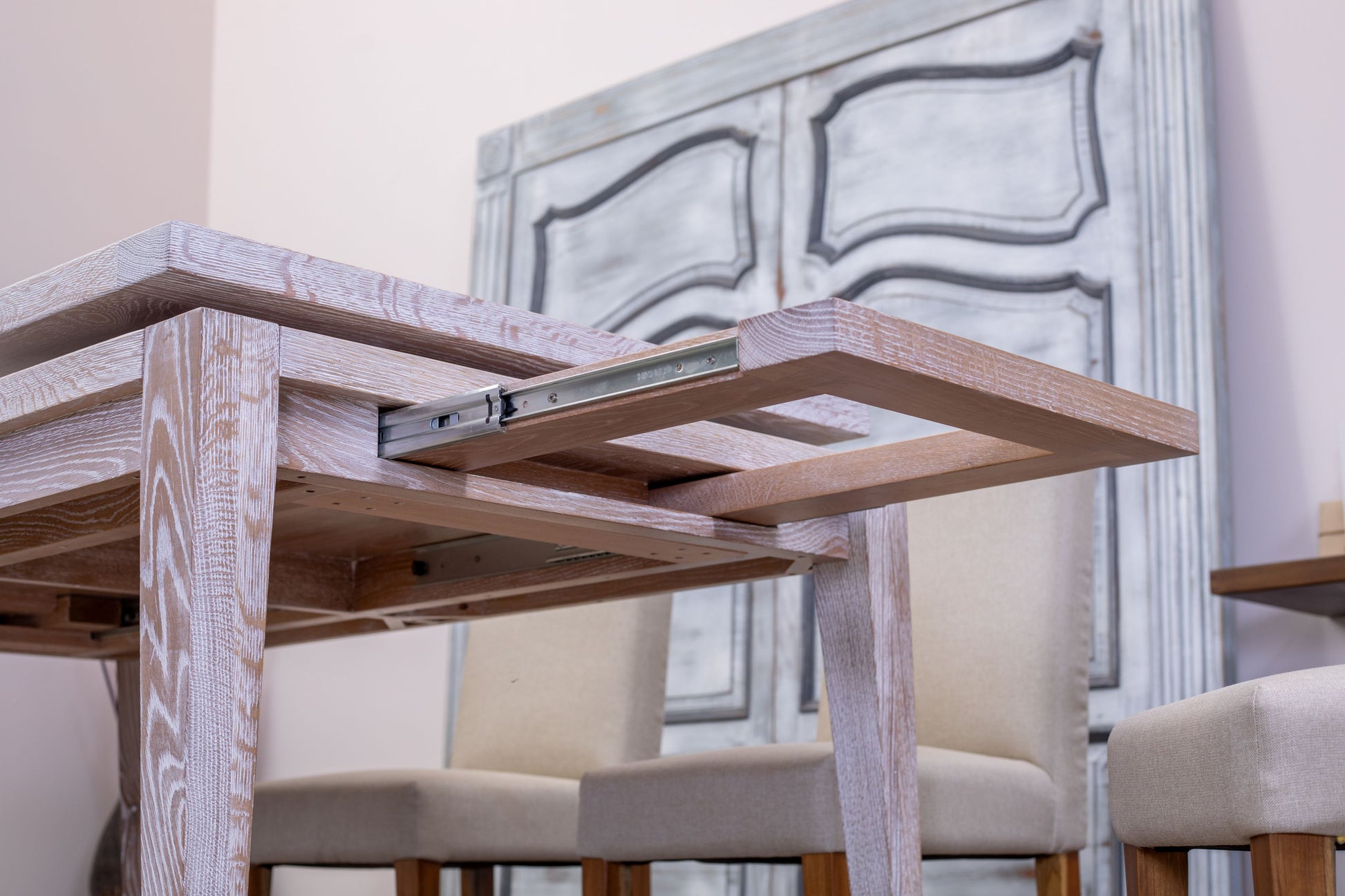 60x38"/100" Wynwood Oak Extension Dining Table, Brushed-Textured Sun Bleached Finish