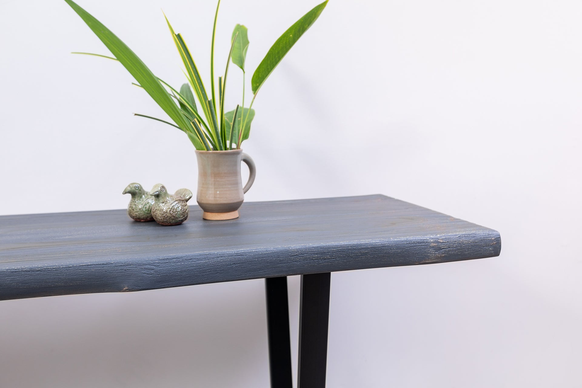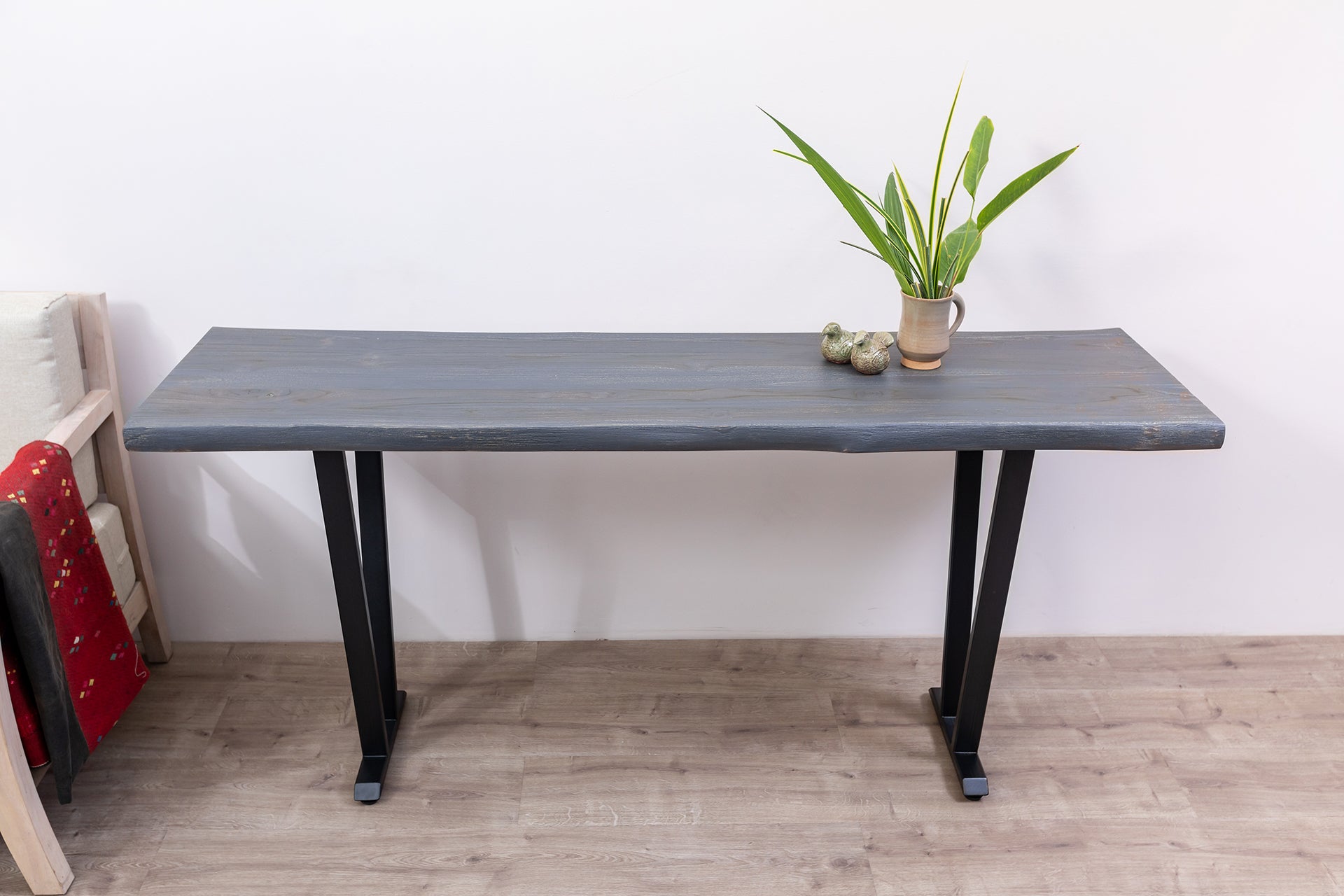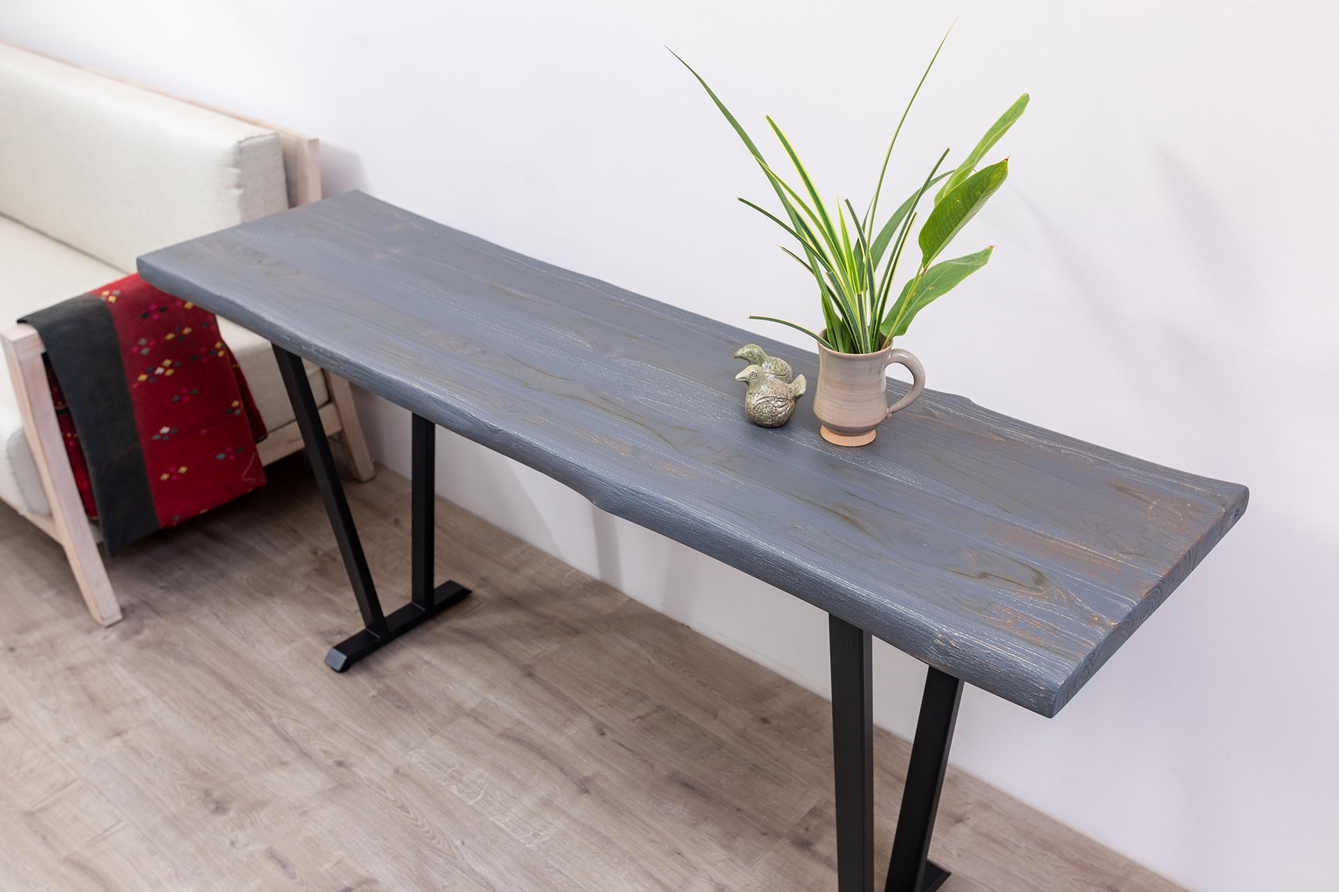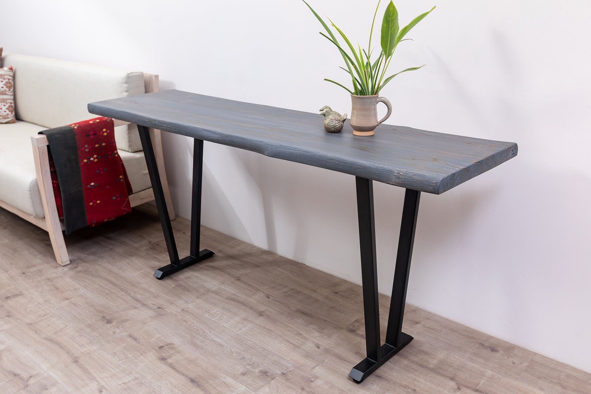 65x18" Teak Live Edge Console Table, Brushed-Texture Anthracite Grey Finish
