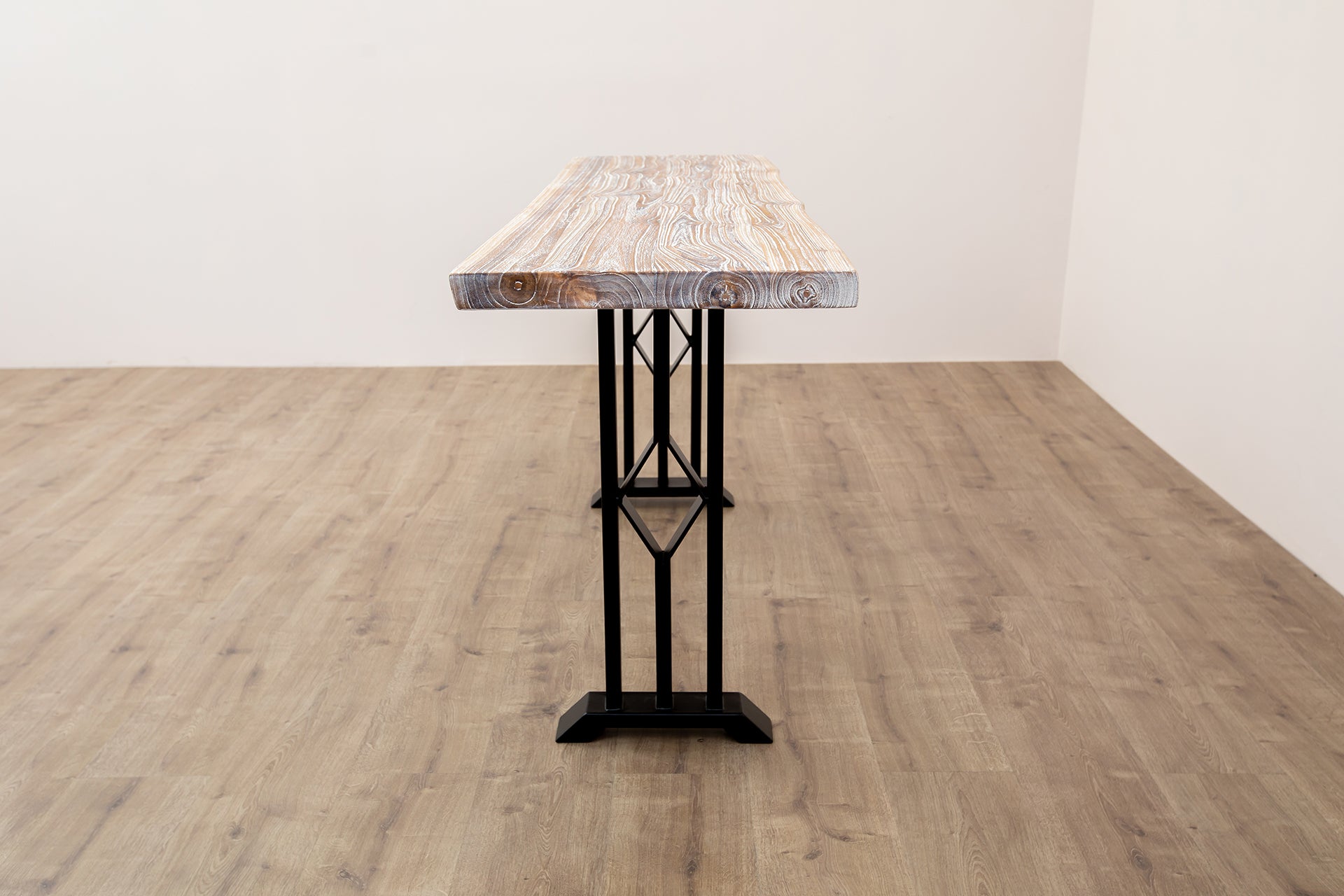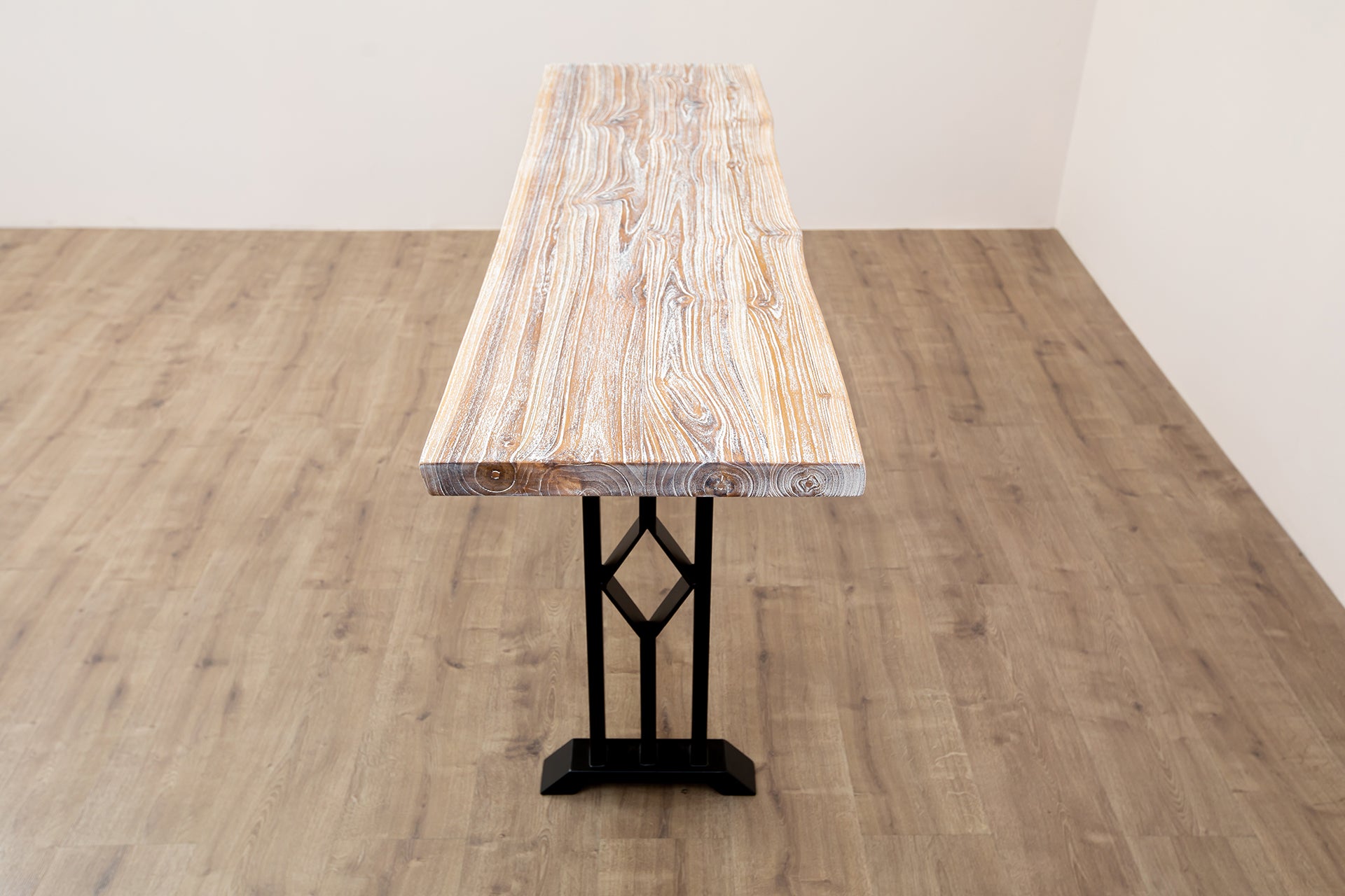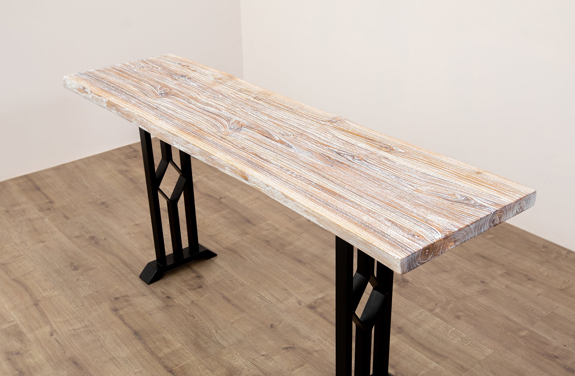 65x18" Teak Live Edge Console Table, Brushed-Texture Sun Bleached Finish