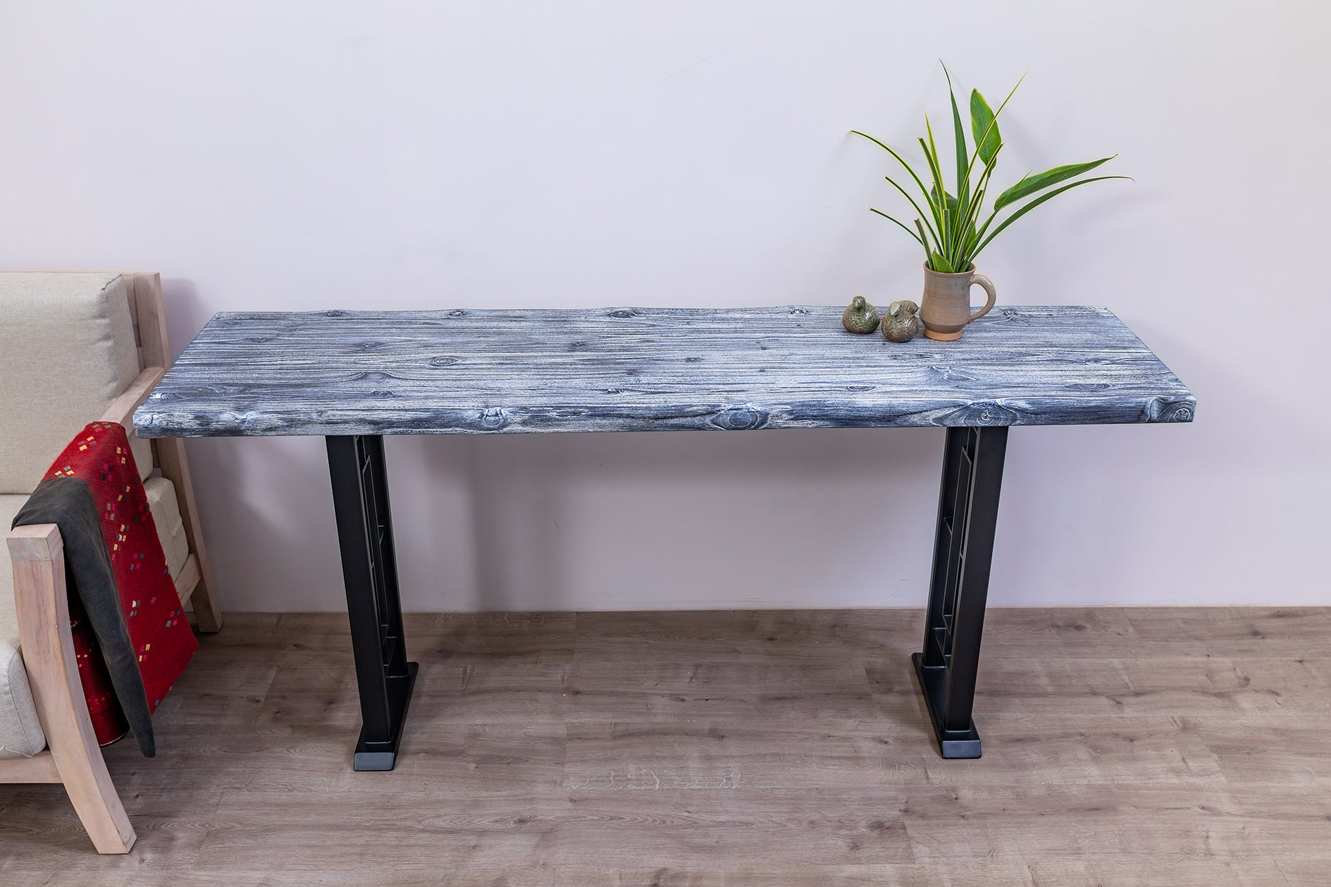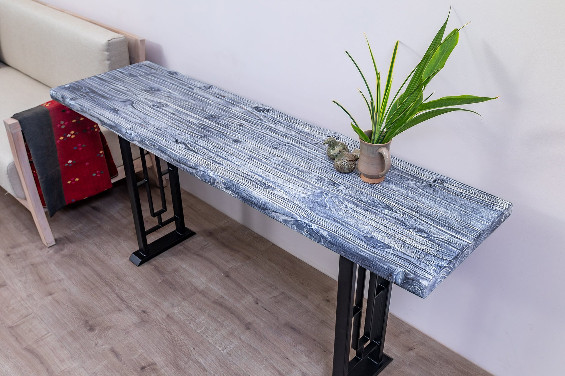 65x18" Teak Live Edge Console Table, Brushed-Texture Weathered Finish