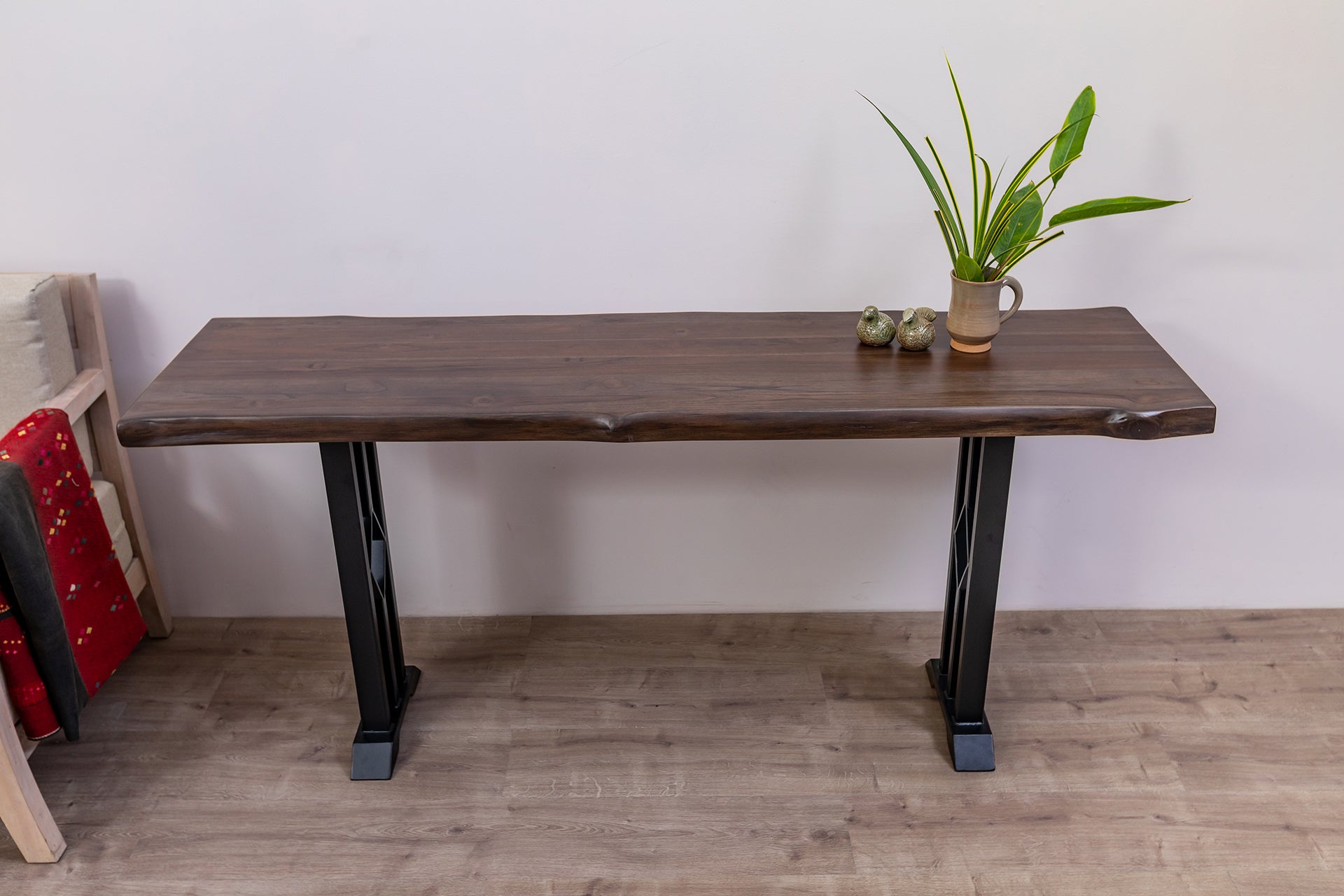 65x18" Teak Live Edge Console Table, Smooth-Texture Cocoa Finish