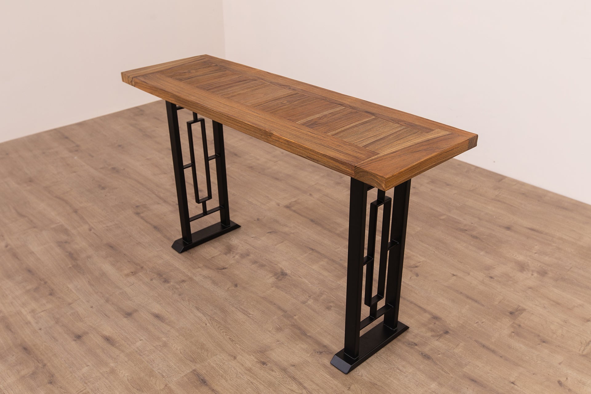 Elevate your space with our handcrafted live edge teak console table, showcasing the natural curves of solid wood paired with sleek, durable metal legs — a perfect blend of organic beauty and modern design.