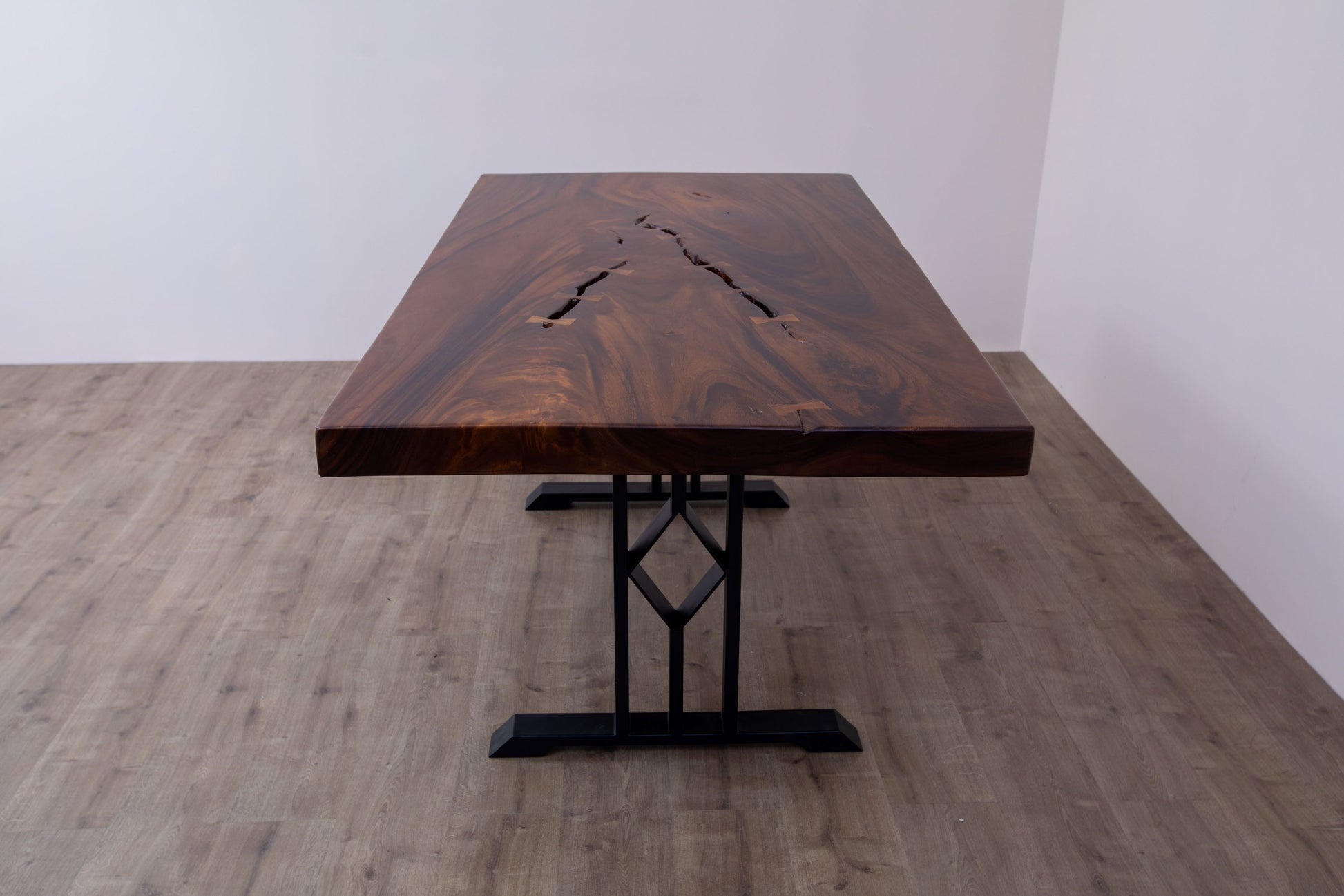 Bring natural elegance to your dining space with our handmade Acacia dining table. Crafted from 100% solid Acacia wood, each table features unique grain patterns, rich tones, and organic character that make every piece one of a kind. The hand-finished surface is smooth and durable, highlighting the beauty of the wood while offering everyday functionality. Whether you're hosting a family dinner or a casual gathering, this table adds warmth, style, and timeless appeal to any setting.