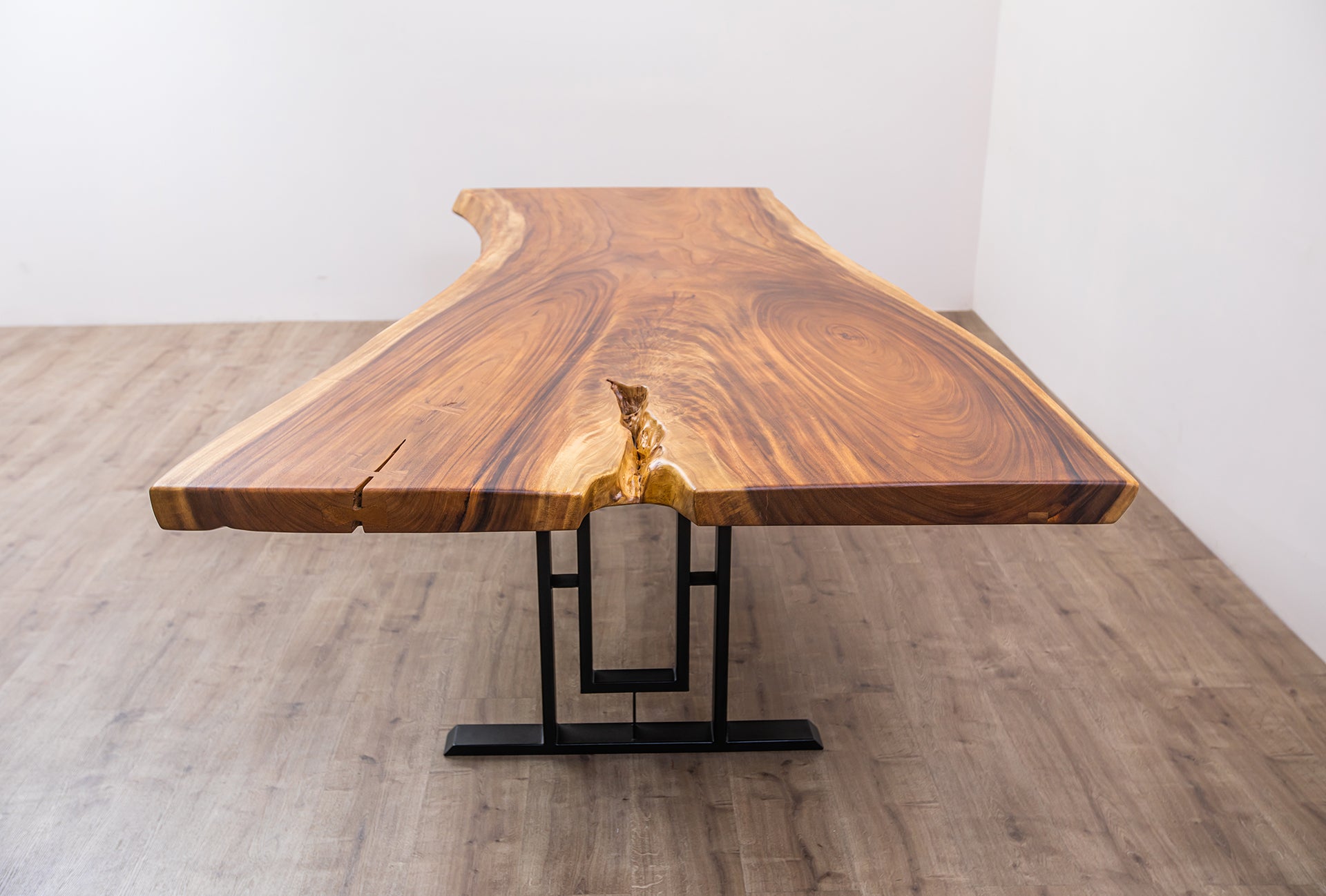 Bring natural elegance to your dining space with our handmade Acacia dining table. Crafted from 100% solid Acacia wood, each table features unique grain patterns, rich tones, and organic character that make every piece one of a kind. The hand-finished surface is smooth and durable, highlighting the beauty of the wood while offering everyday functionality. Whether you're hosting a family dinner or a casual gathering, this table adds warmth, style, and timeless appeal to any setting.