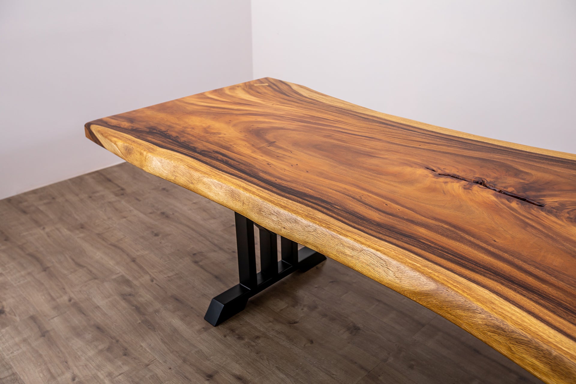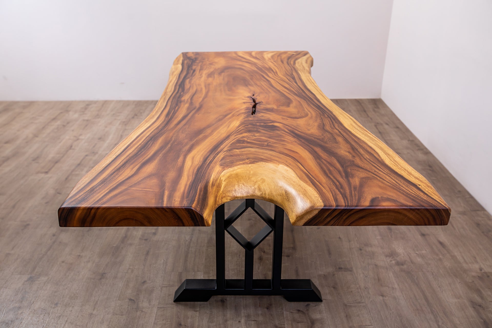 Bring natural elegance to your dining space with our handmade Acacia dining table. Crafted from 100% solid Acacia wood, each table features unique grain patterns, rich tones, and organic character that make every piece one of a kind. The hand-finished surface is smooth and durable, highlighting the beauty of the wood while offering everyday functionality. Whether you're hosting a family dinner or a casual gathering, this table adds warmth, style, and timeless appeal to any setting.
