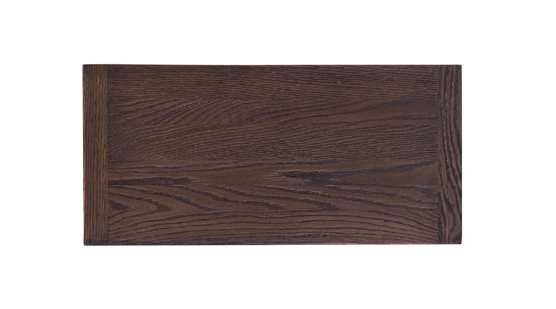 Handcrafted in Thailand from North American Glacier Oak, this 2-inch-thick top features full-length boards for a seamless, refined appearance. Finished in a rich "Cocoa" stain, its subtly brushed texture enhances the natural grain, offering rich depth and tactile appeal—never veneered, only pure, solid wood. Never veneer—just pure, natural beauty.